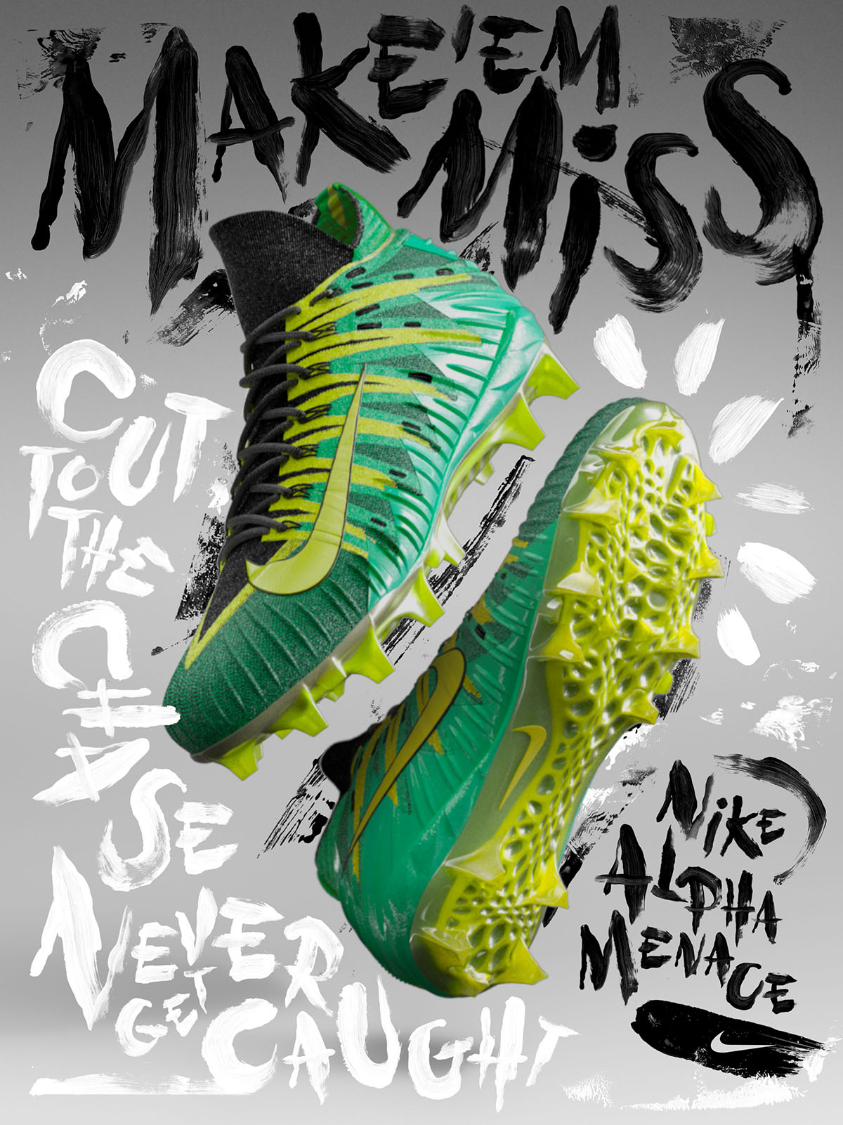 Brush lettering for the launch of the US Football cleat, The NIKE ALPHA MENACE.