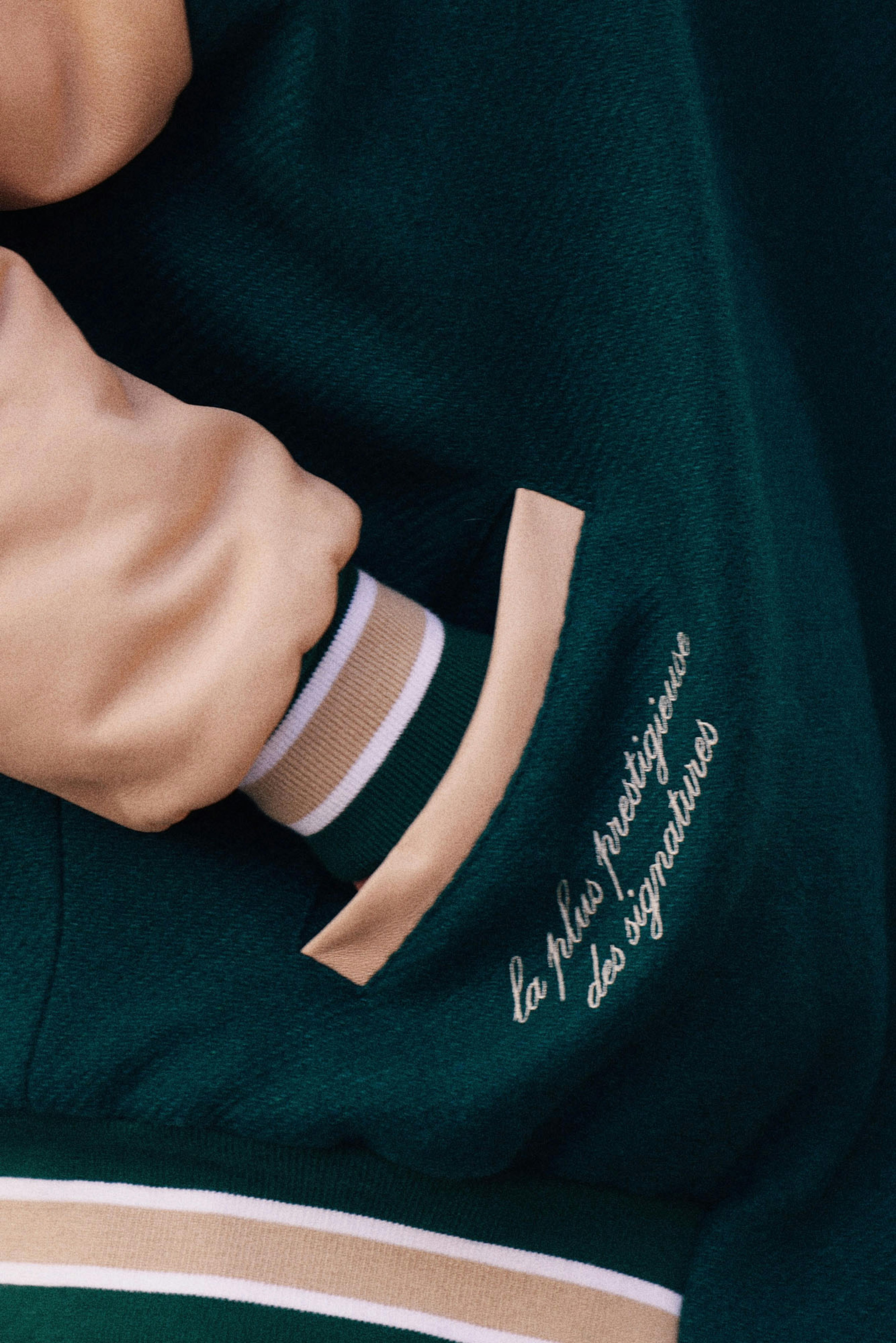 A bespoke inner label was also developed by assembling historical logos from the brand’s archives, celebrating its rich heritage. As a final detail, the vintage tagline 'La plus prestigieuse des signatures' was added to the right pocket.