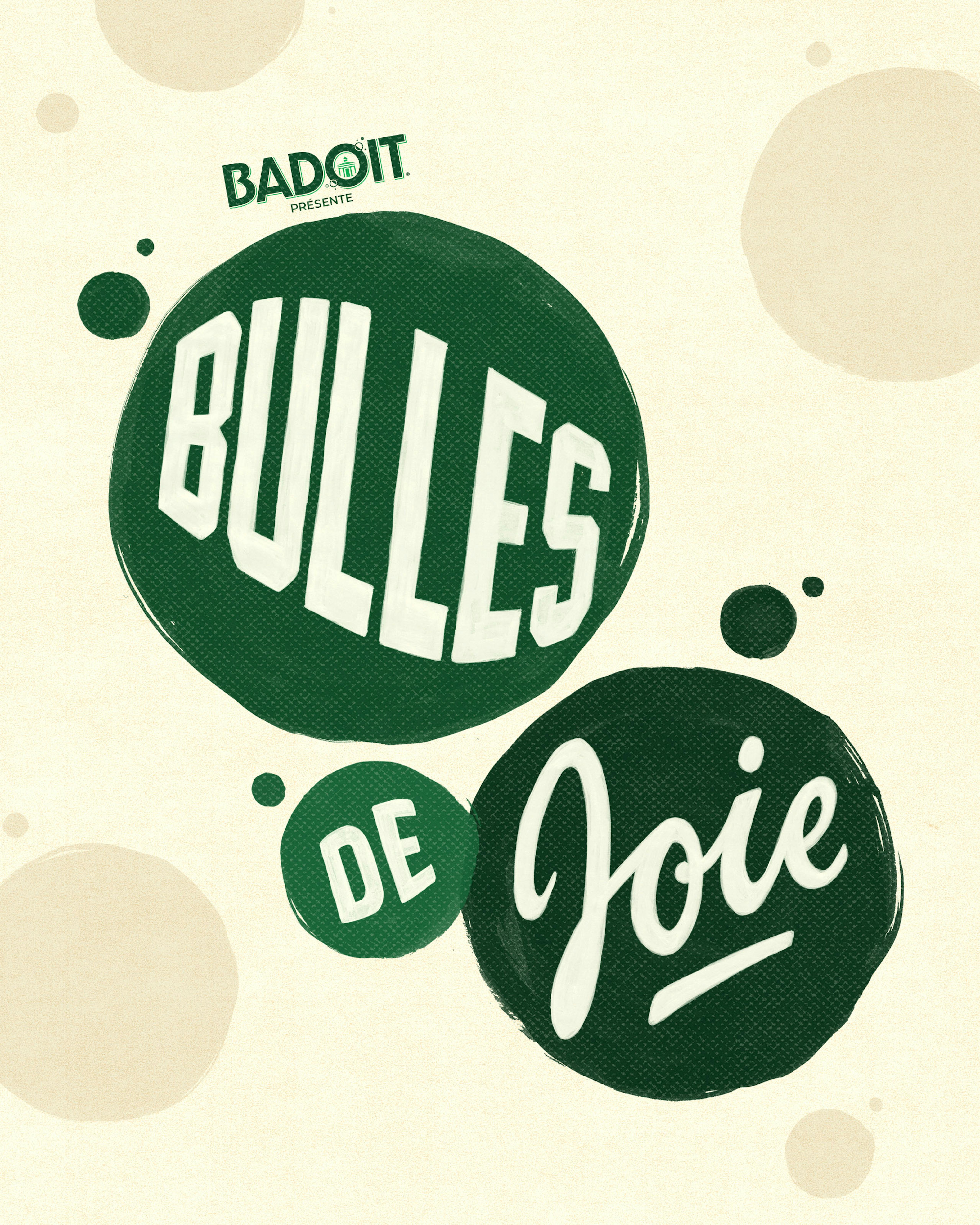 As Bulles de Joie supports a range of culinary pop-ups, the identity needed to be flexible. We developed a dynamic visual system built around modular bubble forms—adaptable to different chefs, menus, and settings—while maintaining a cohesive tone of celebration and creativity.