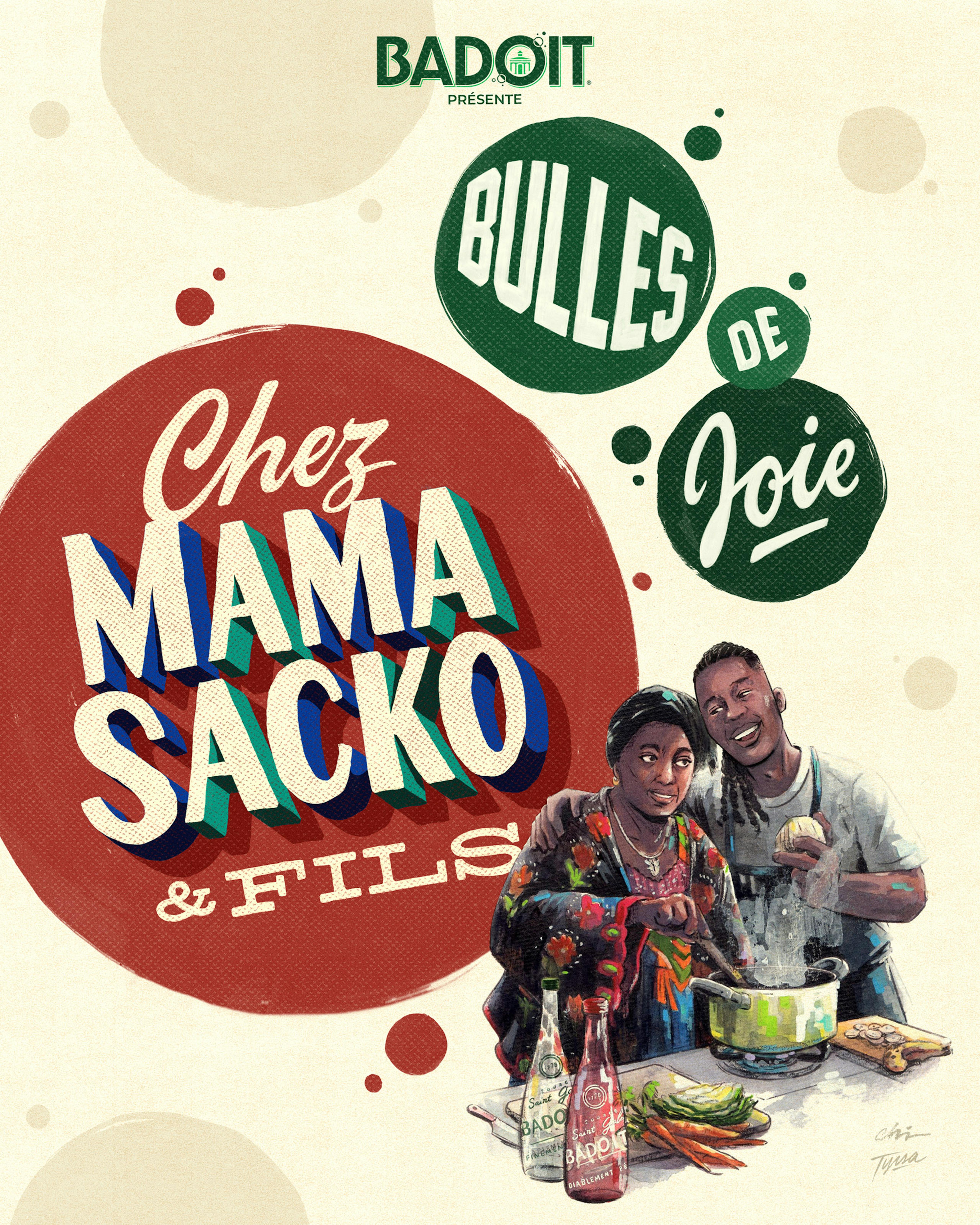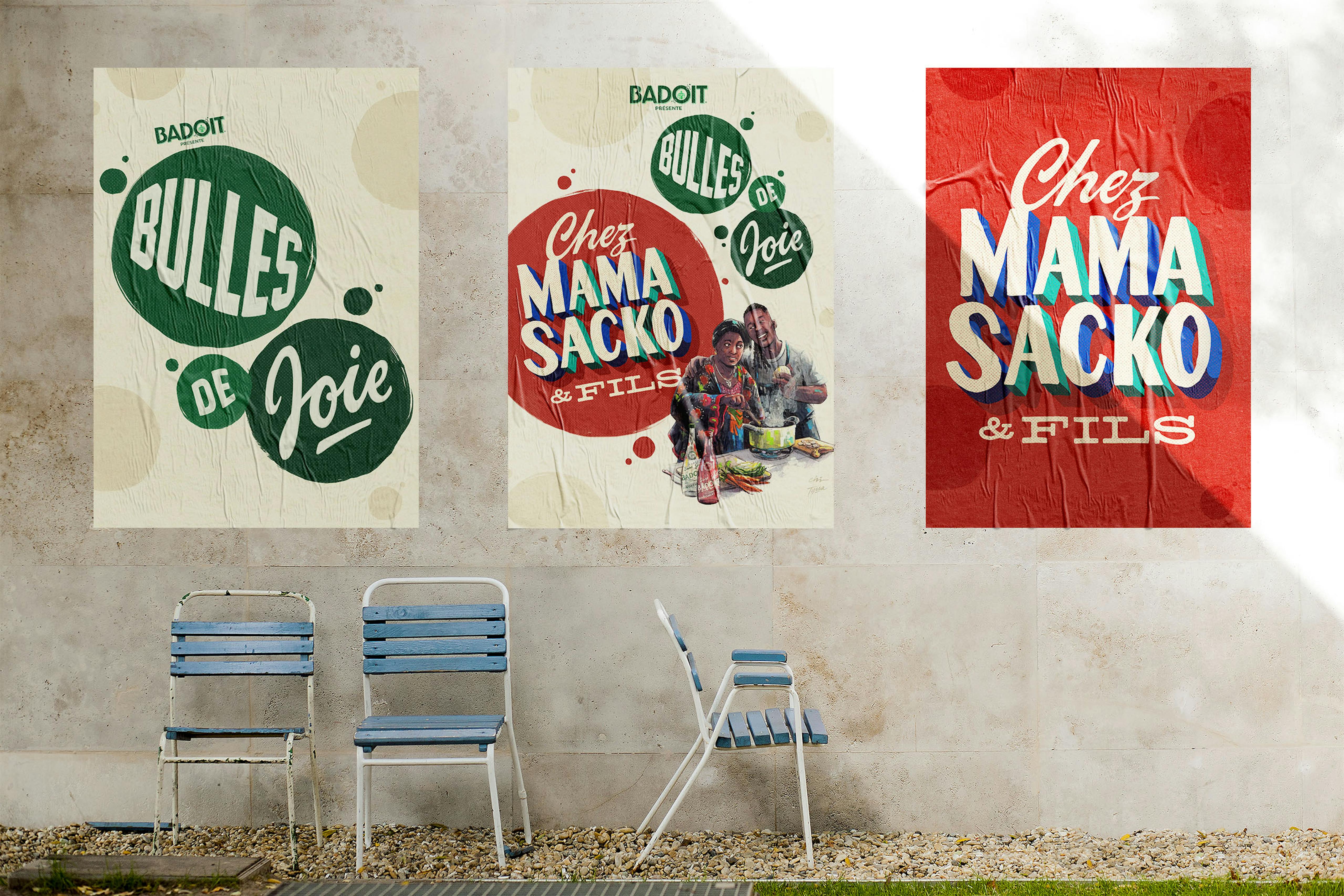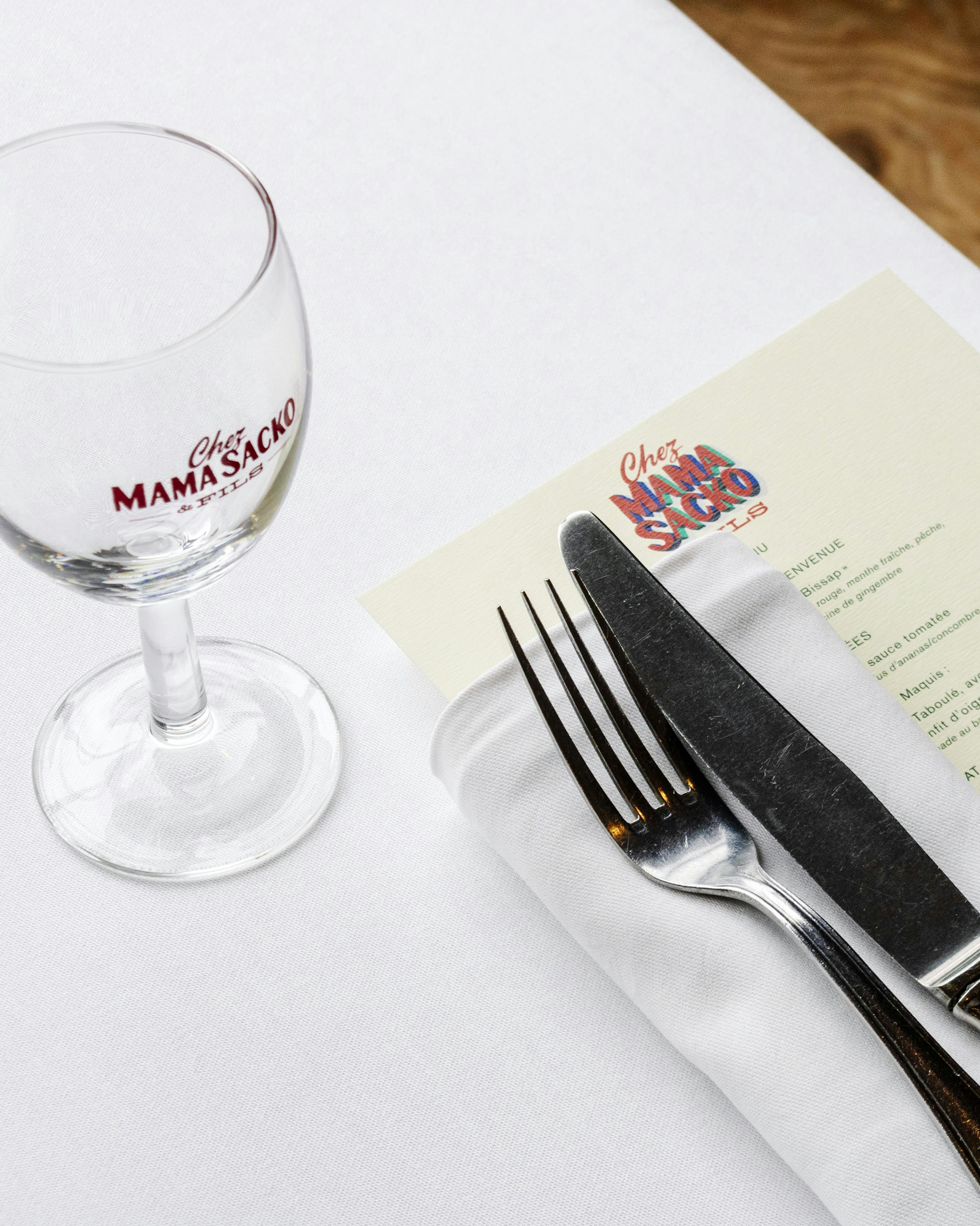 Visual identity for Chez Mama Sacko & Fils, a two-day pop-up imagined by chef Mory Sacko as the restaurant his mother might have opened. Created as part of Bulles de Joie, a program by Badoit and Phamily First that gives chefs the chance to bring a personal culinary dream to life, the identity was designed to reflect both emotional resonance and rich cultural heritage.