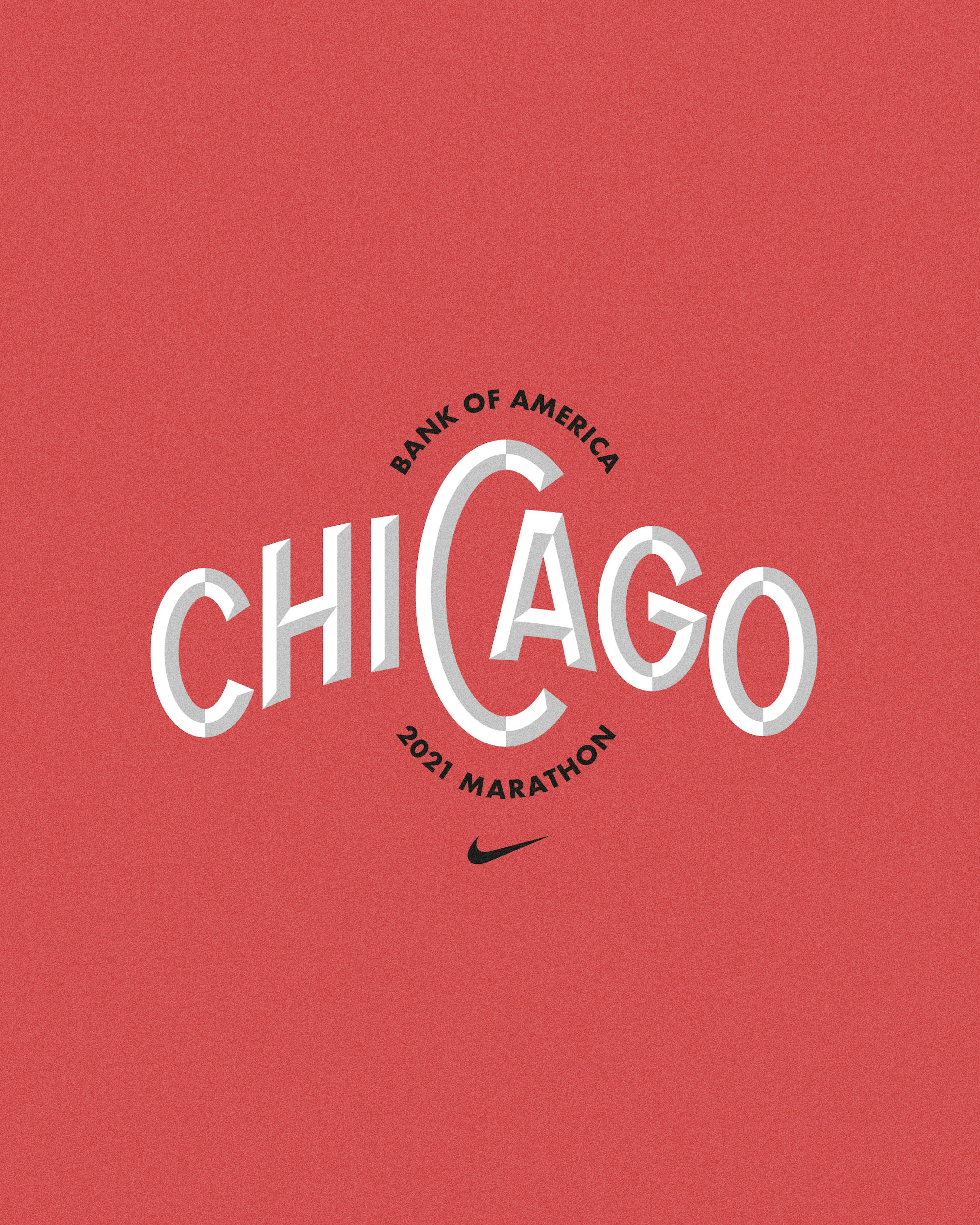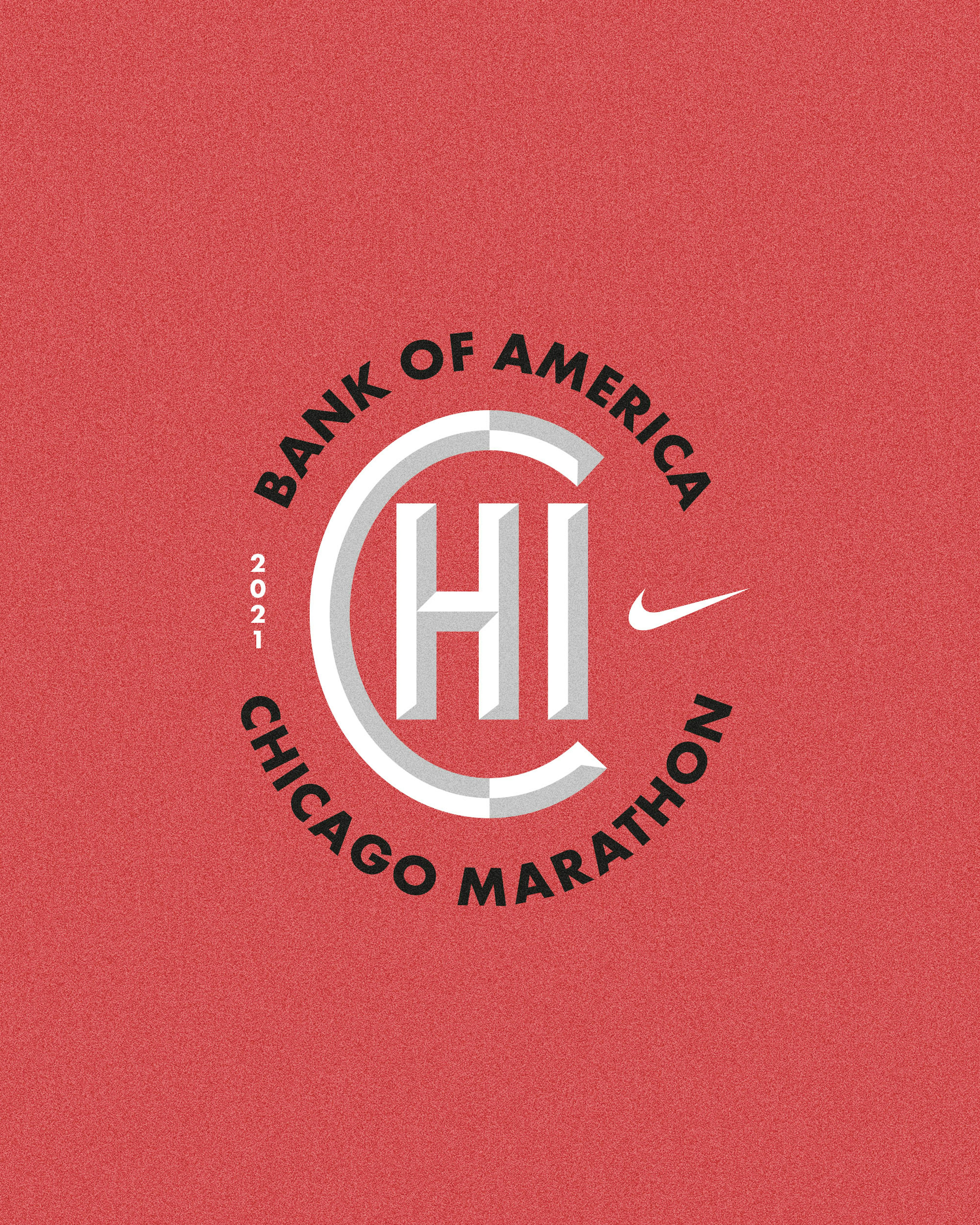 Visual identity for the 2021 Chicago Marathon, sponsored by Nike.