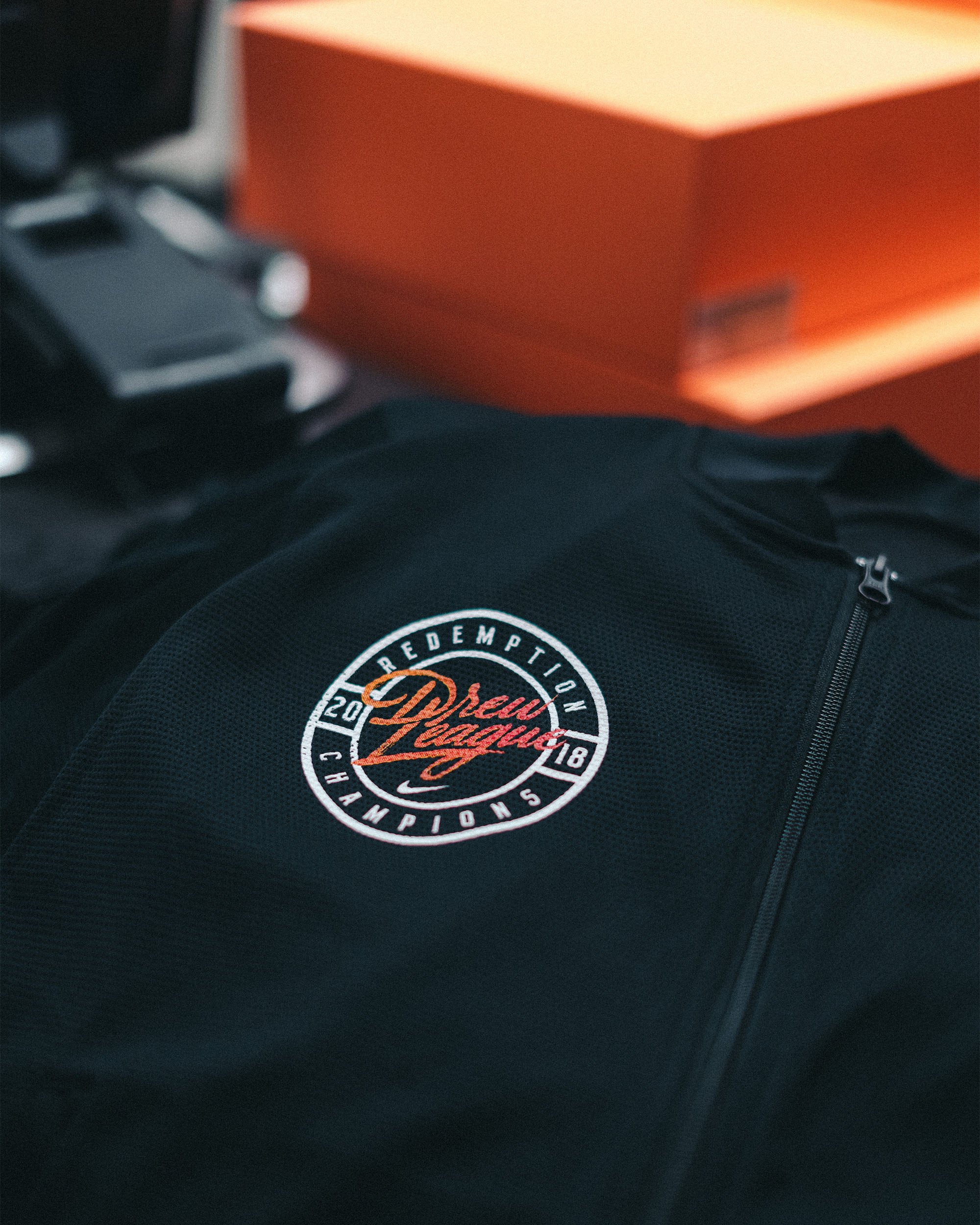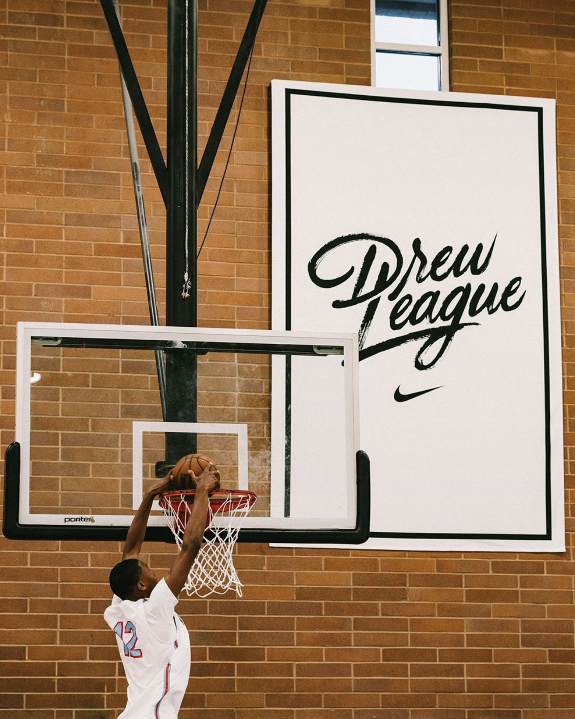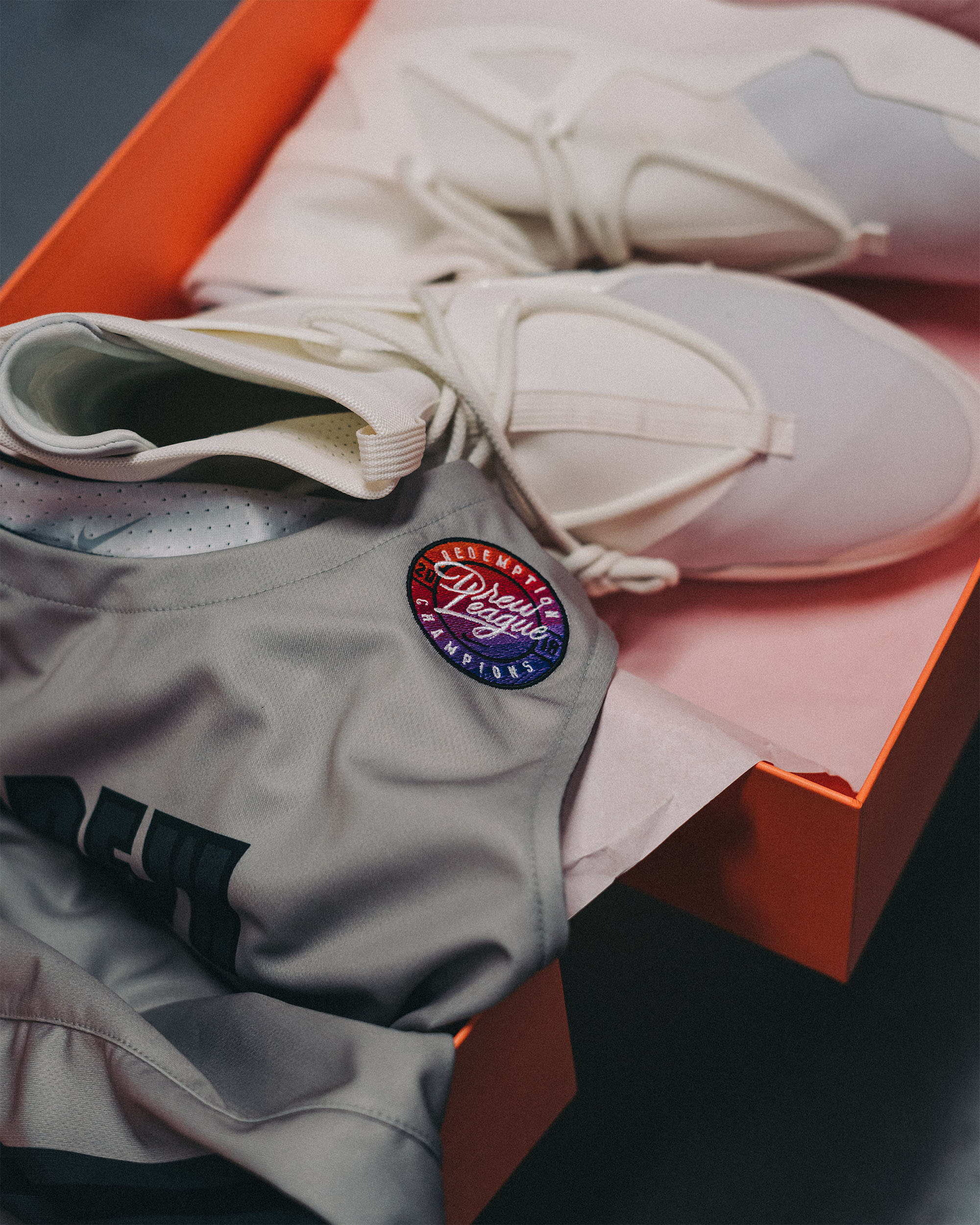 The visual identity was printed all around and over the basketball court and on different apparels, such as a pair of Air Force 1.