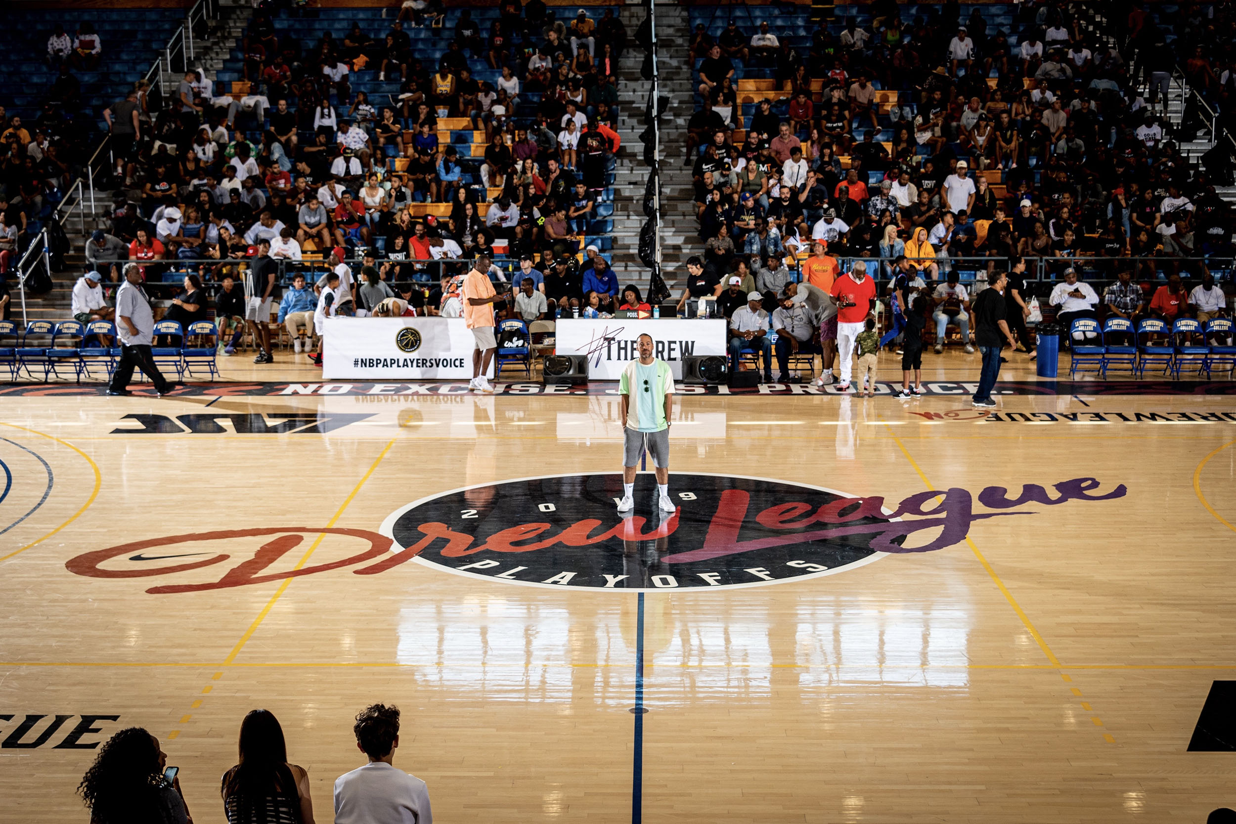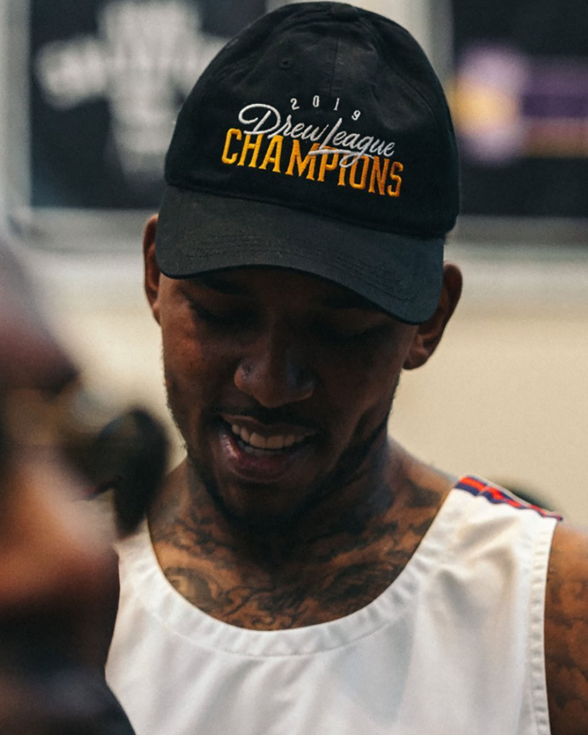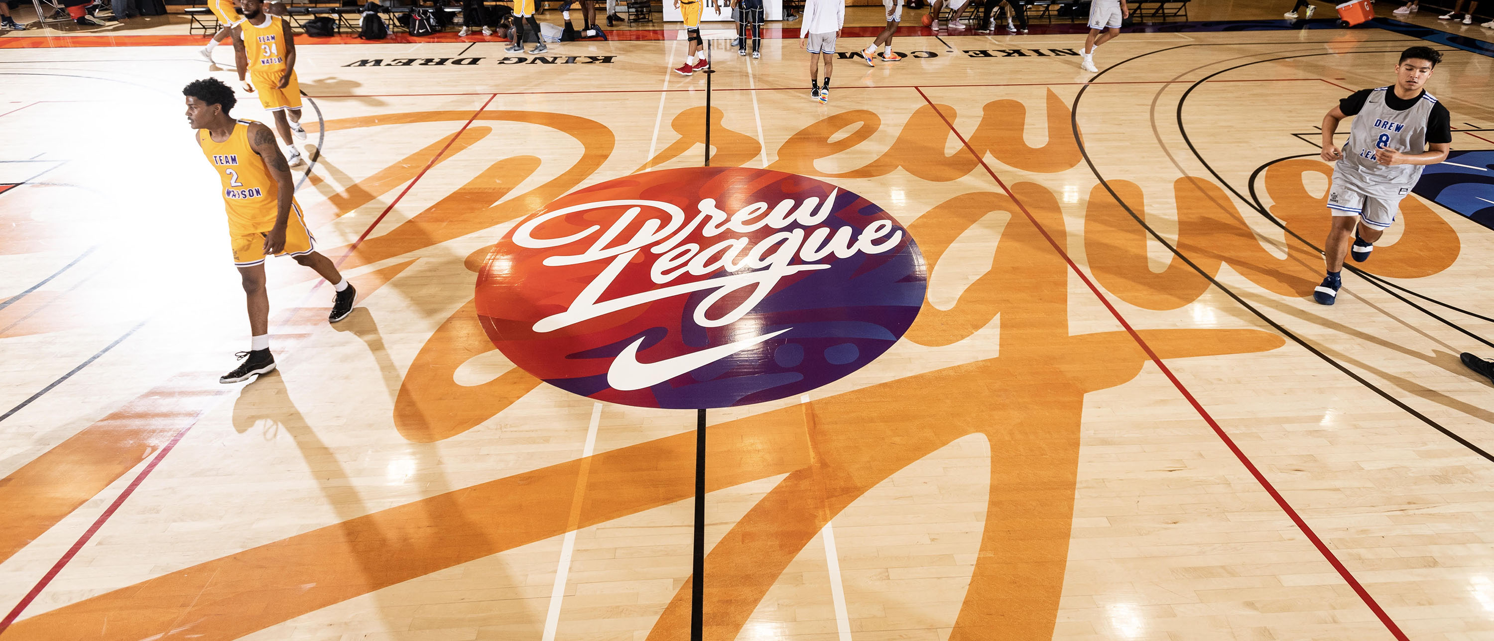 The visual identity was printed all around and over the basketball court and on different apparels, such as a pair of Air Force 1.