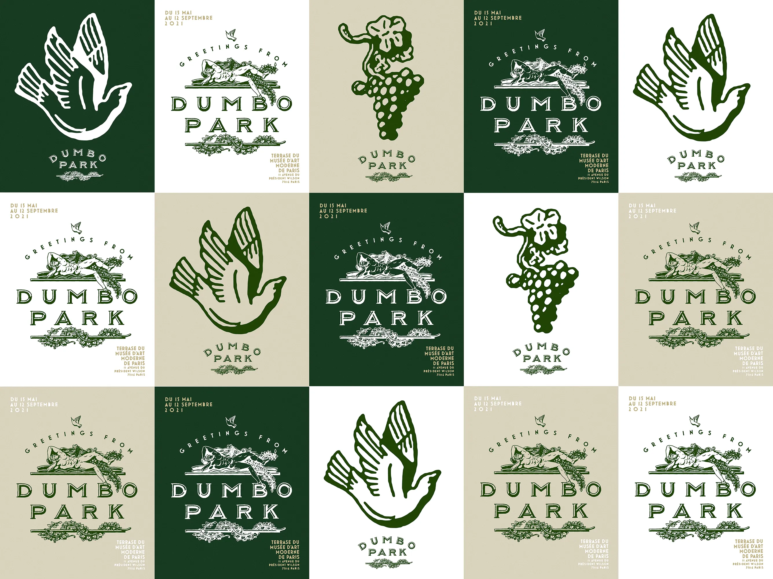 Identity for DUMBO PARK, the seasonal pop-up by Dumbo Paris, set on the esplanade of the Palais de Tokyo and the Musée d'Art moderne de Paris.