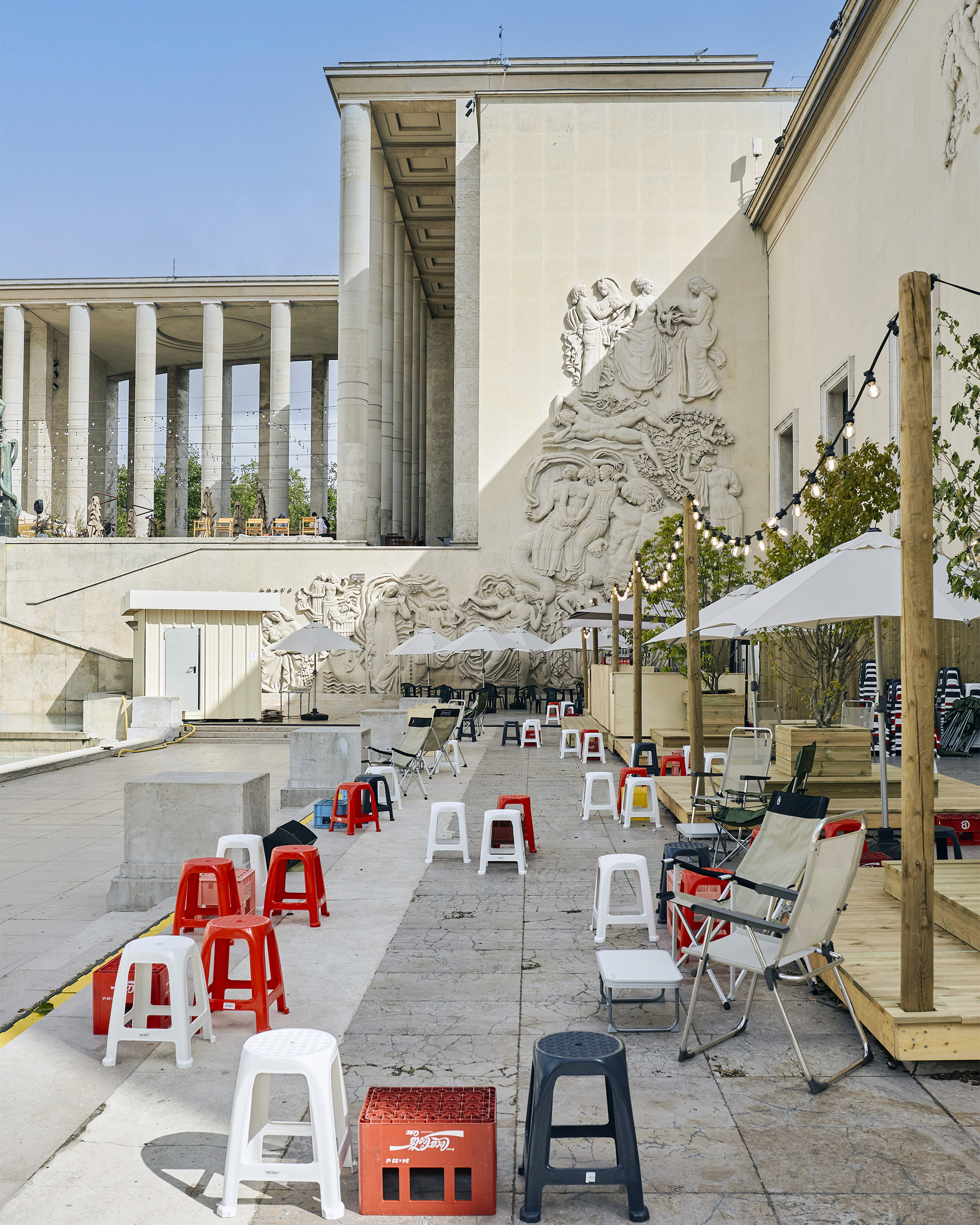 The design pays homage to the location’s iconic architecture, inspired by the monumental bas-relief sculpted by Alfred Janniot for the 1937 International Exhibition.