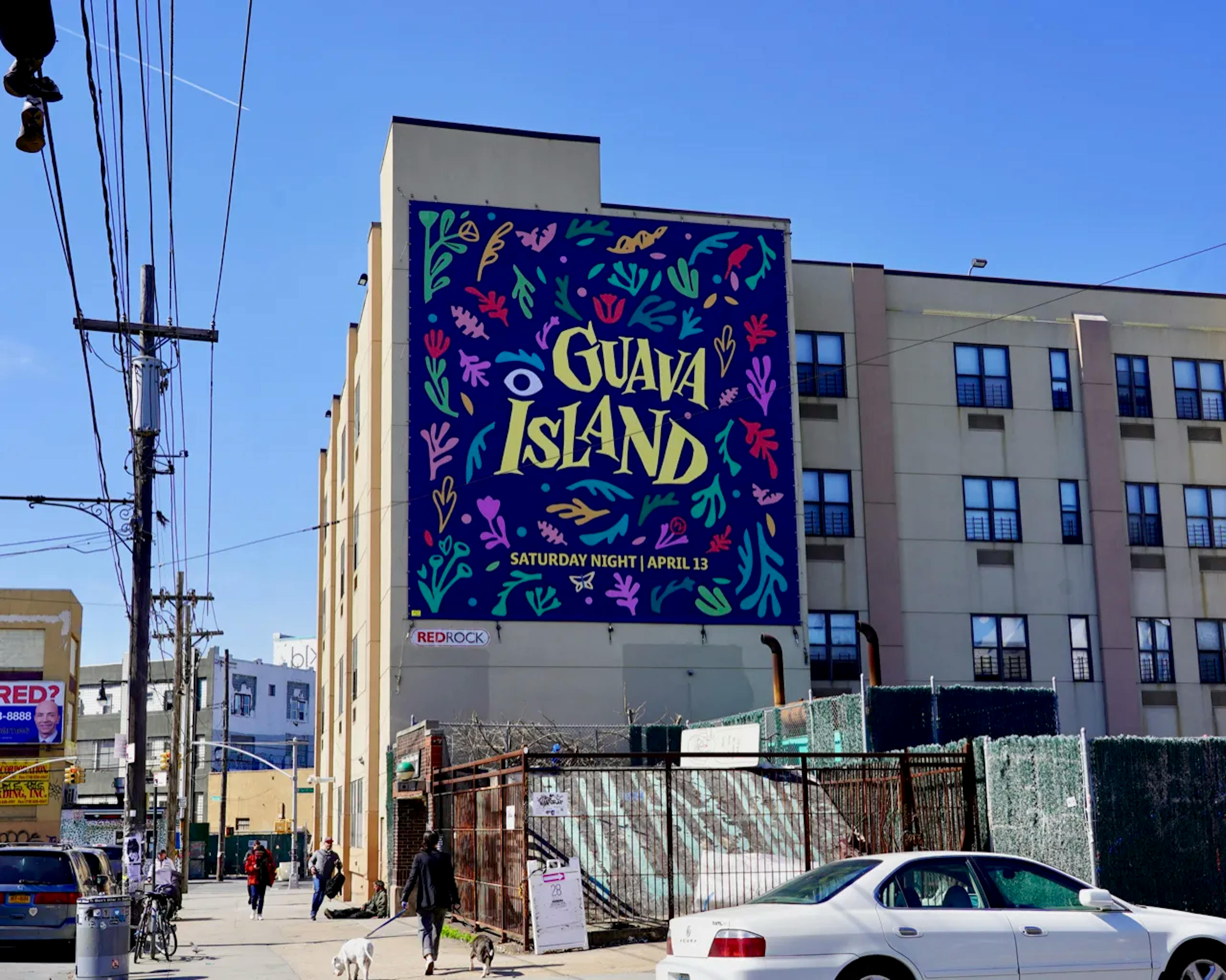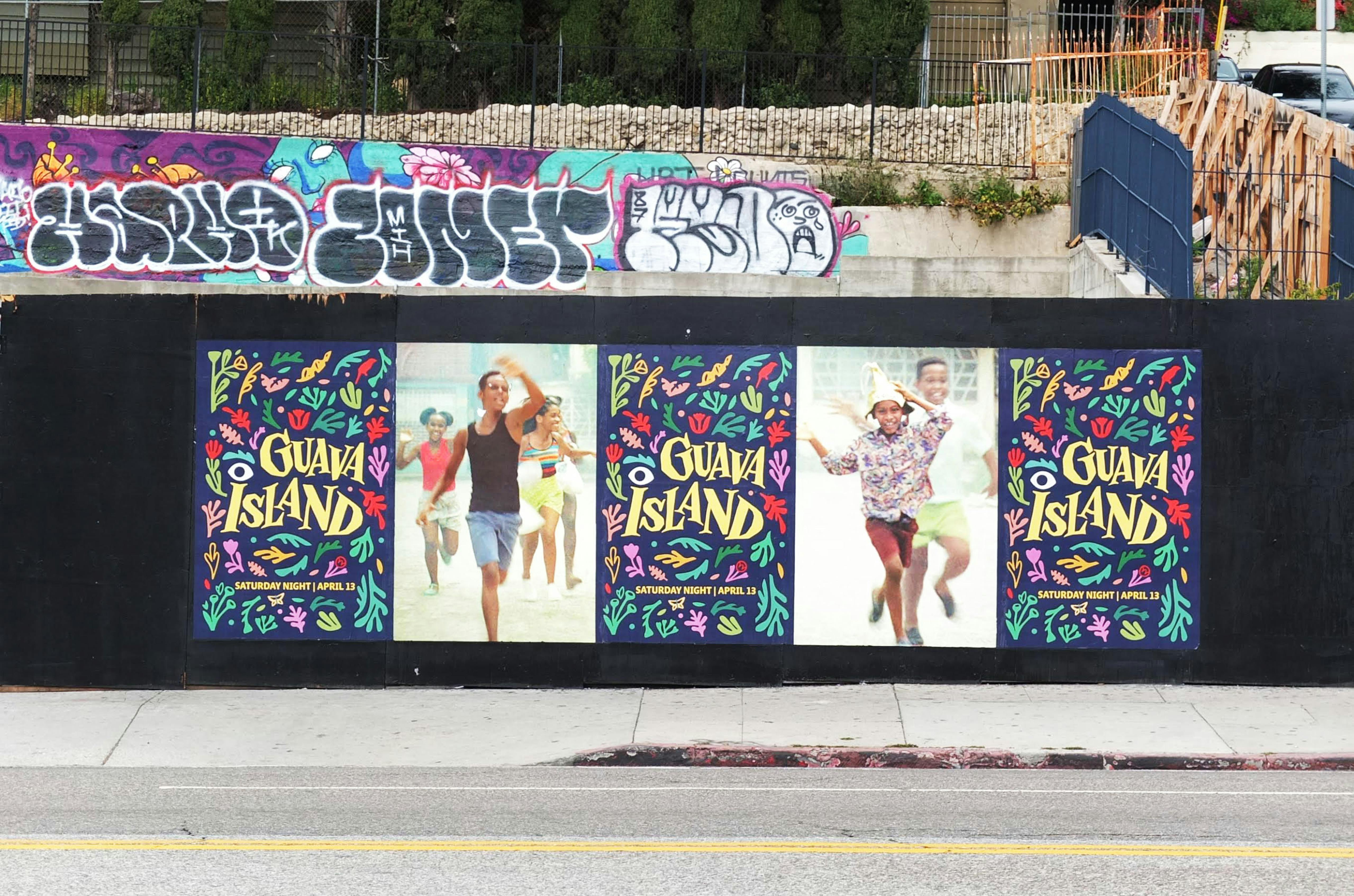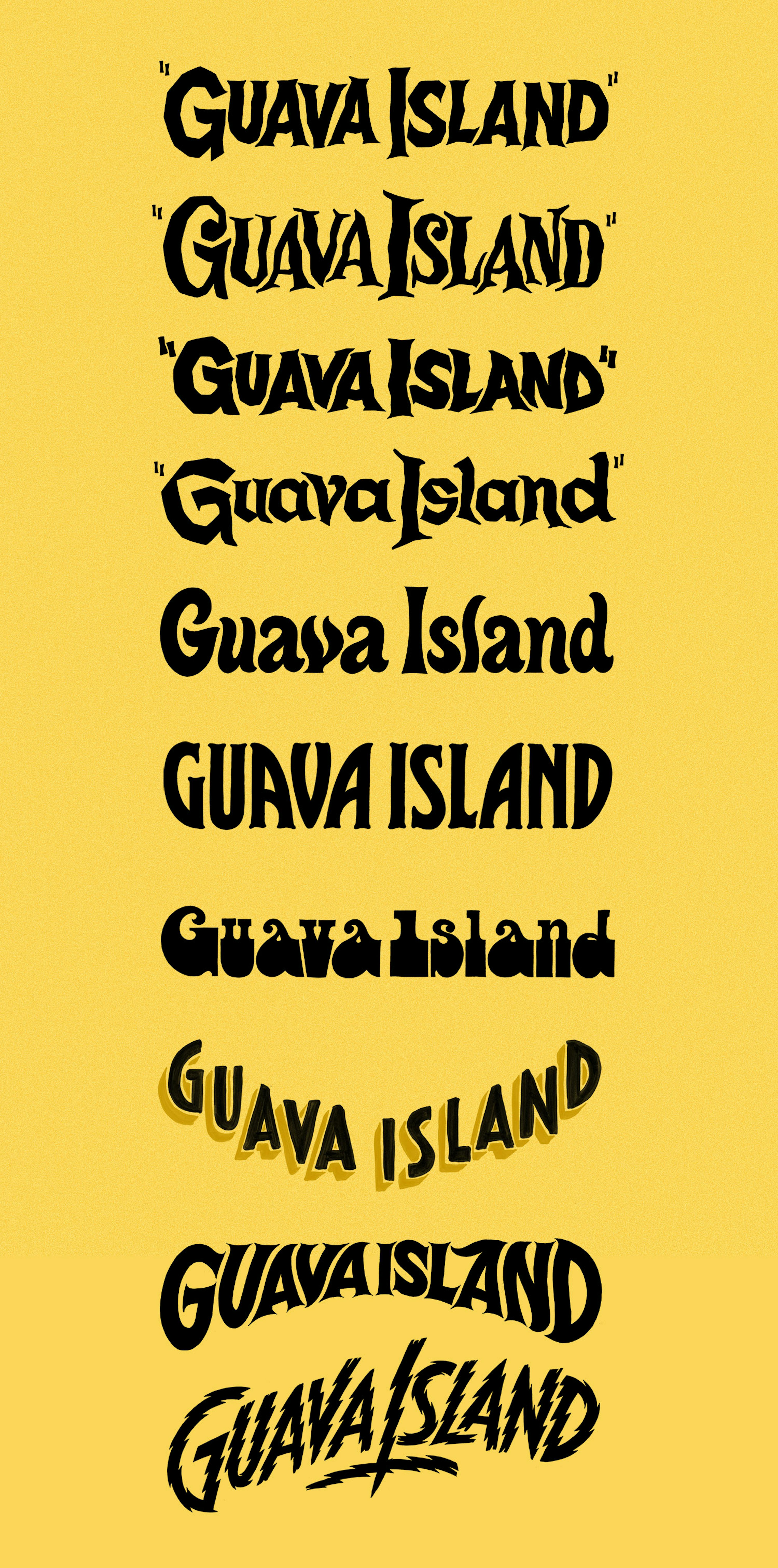 Visual exploration for the GUAVA ISLAND main title, drawing inspiration from a range of references including traditional Cuban sign painting, Senegalese barbershop storefronts, or vintage fruit crate labels