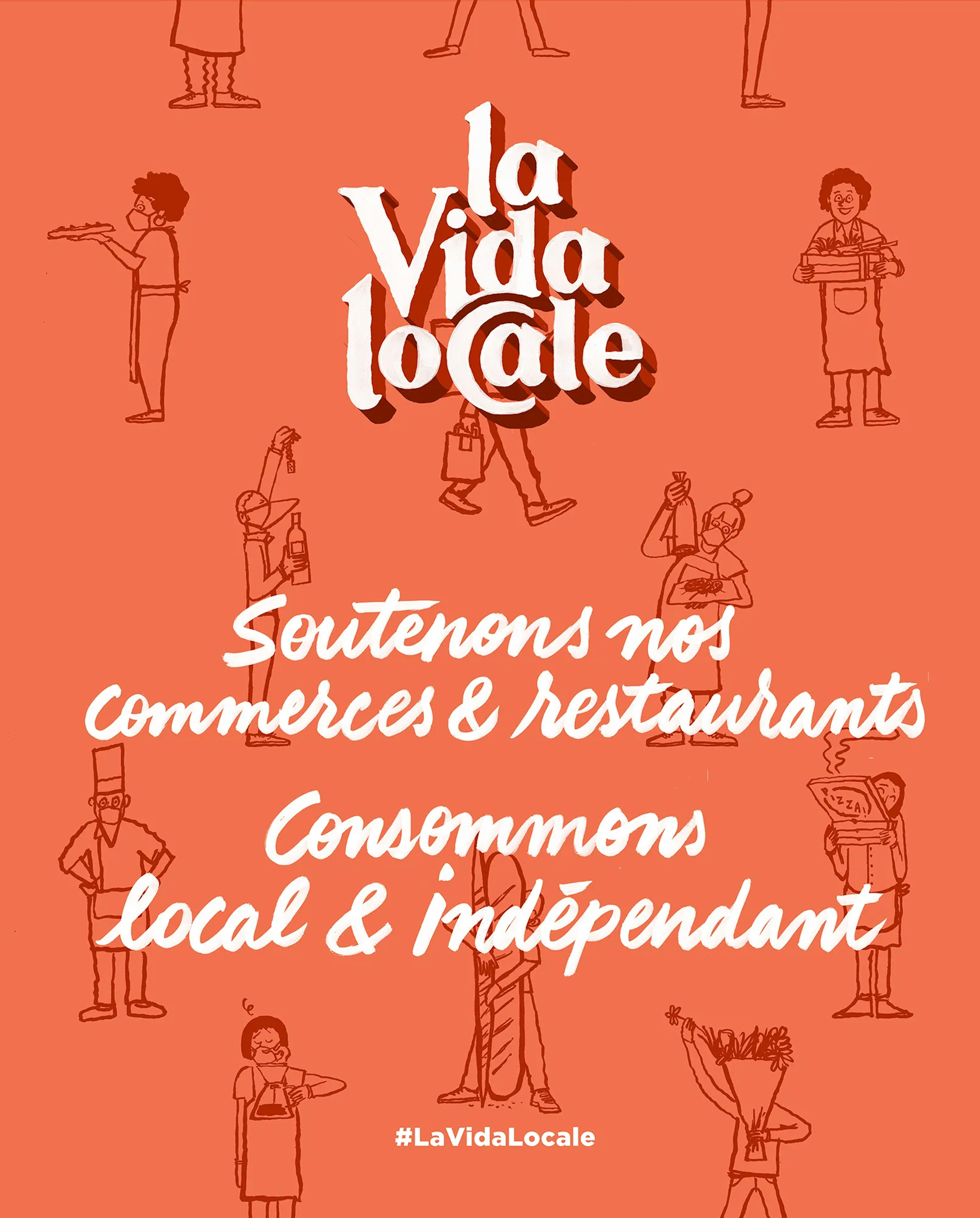 Logo and poster designed for La Vida Locale, an initiative led by Julien Pham (Phamily First) to support local and independent shops, businesses, and restaurants during the Covid-19 crisis.