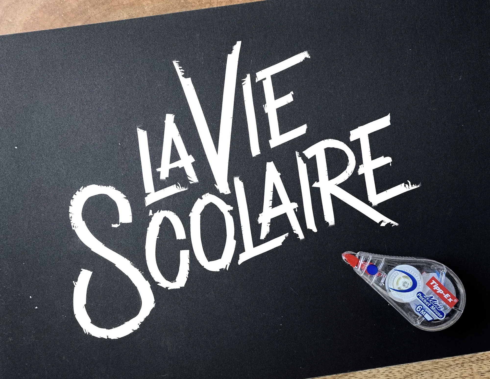 La Vie Scolaire is the title for a French film directed by Grand Corps Malade and Mehdi Idir. The title is entirely created with a Tipp-Ex roll, a tool we all used at school. This film takes place in a Priority Education Zone college in France.