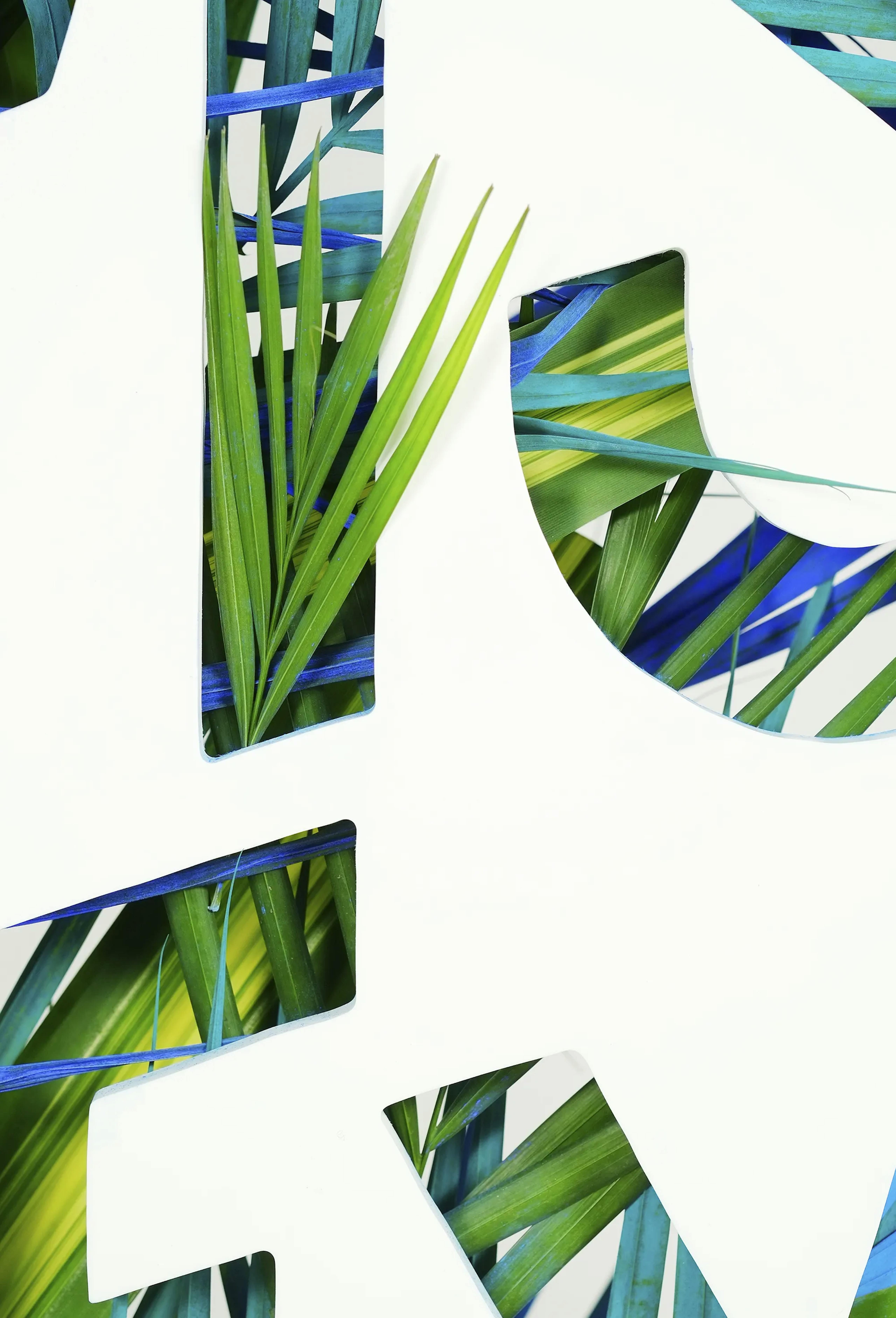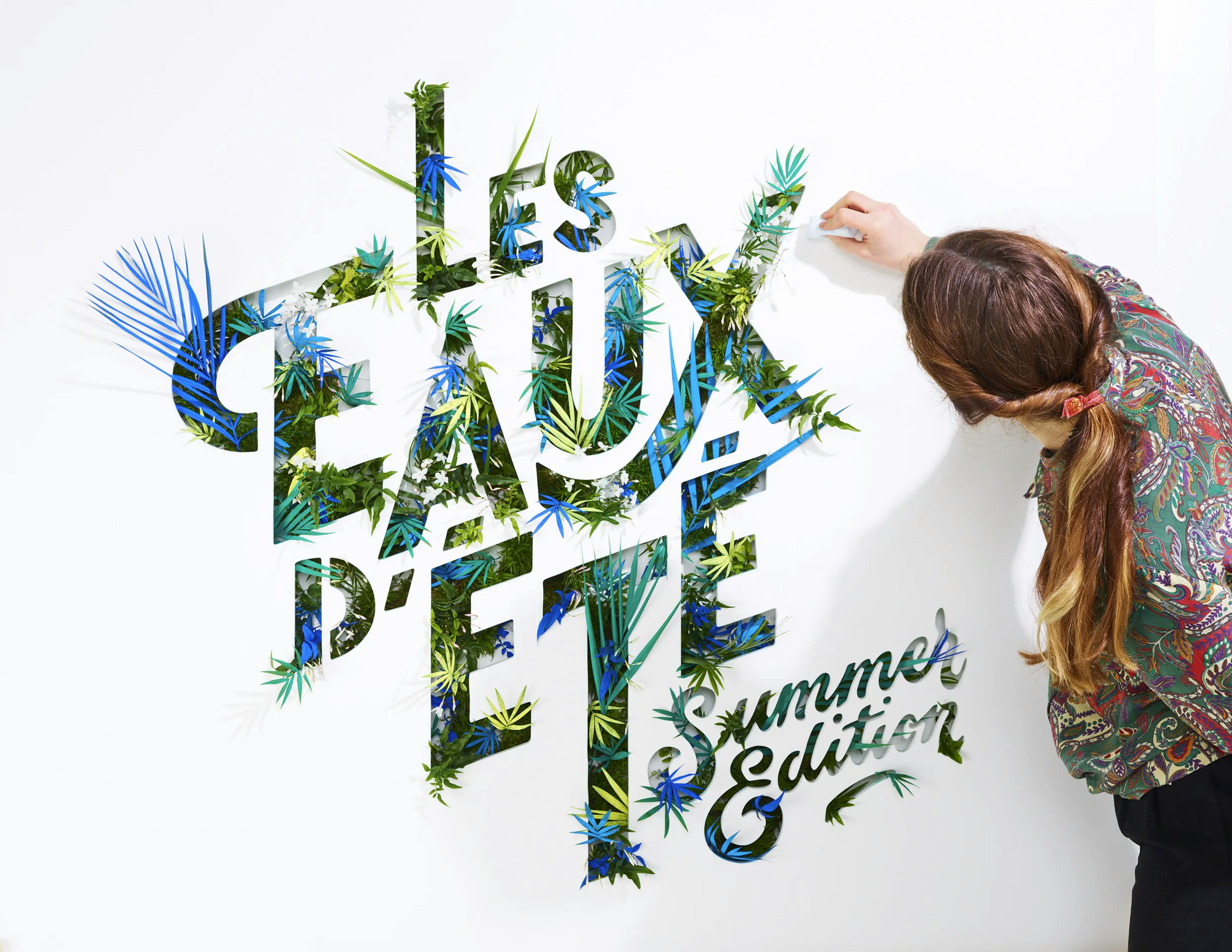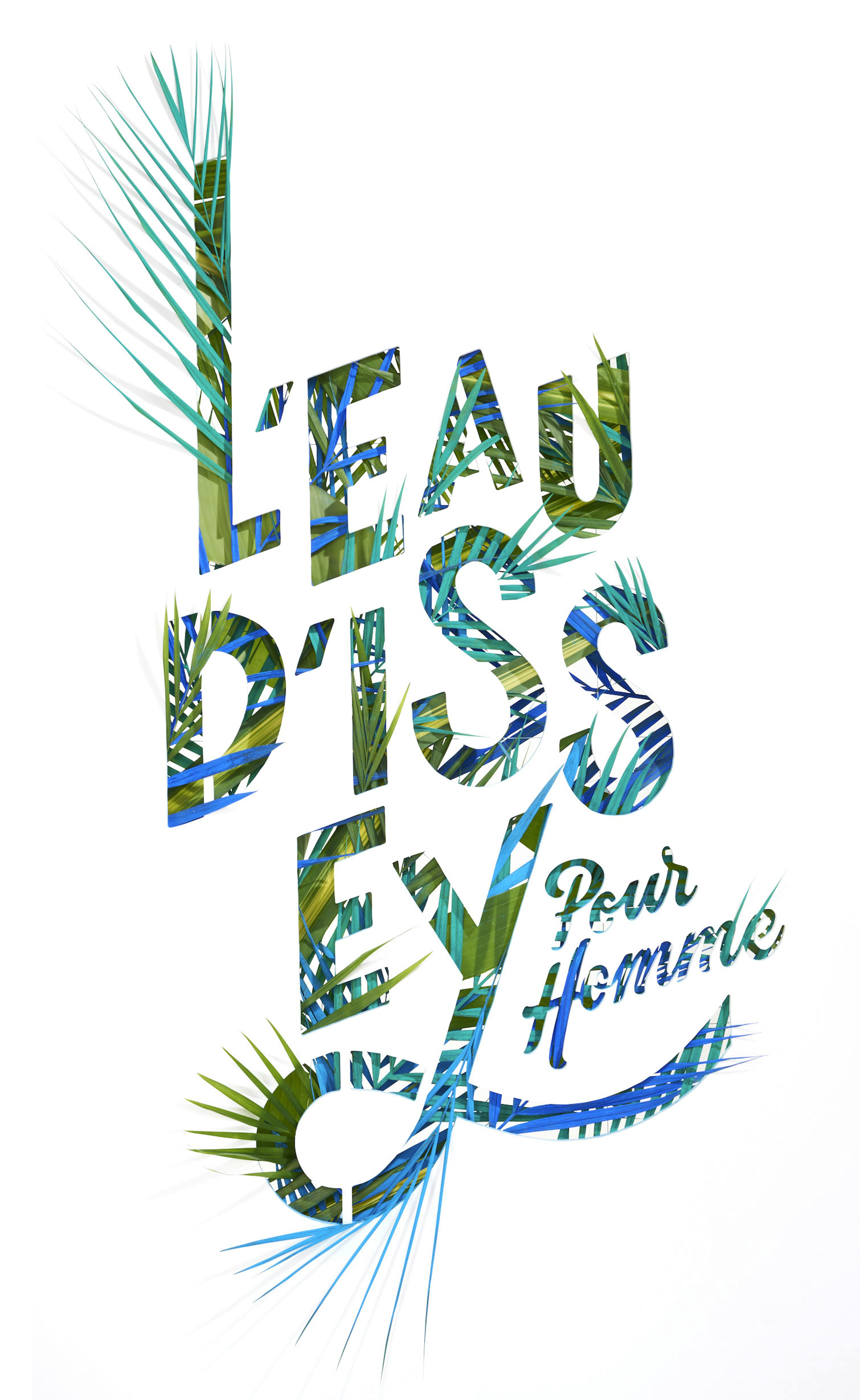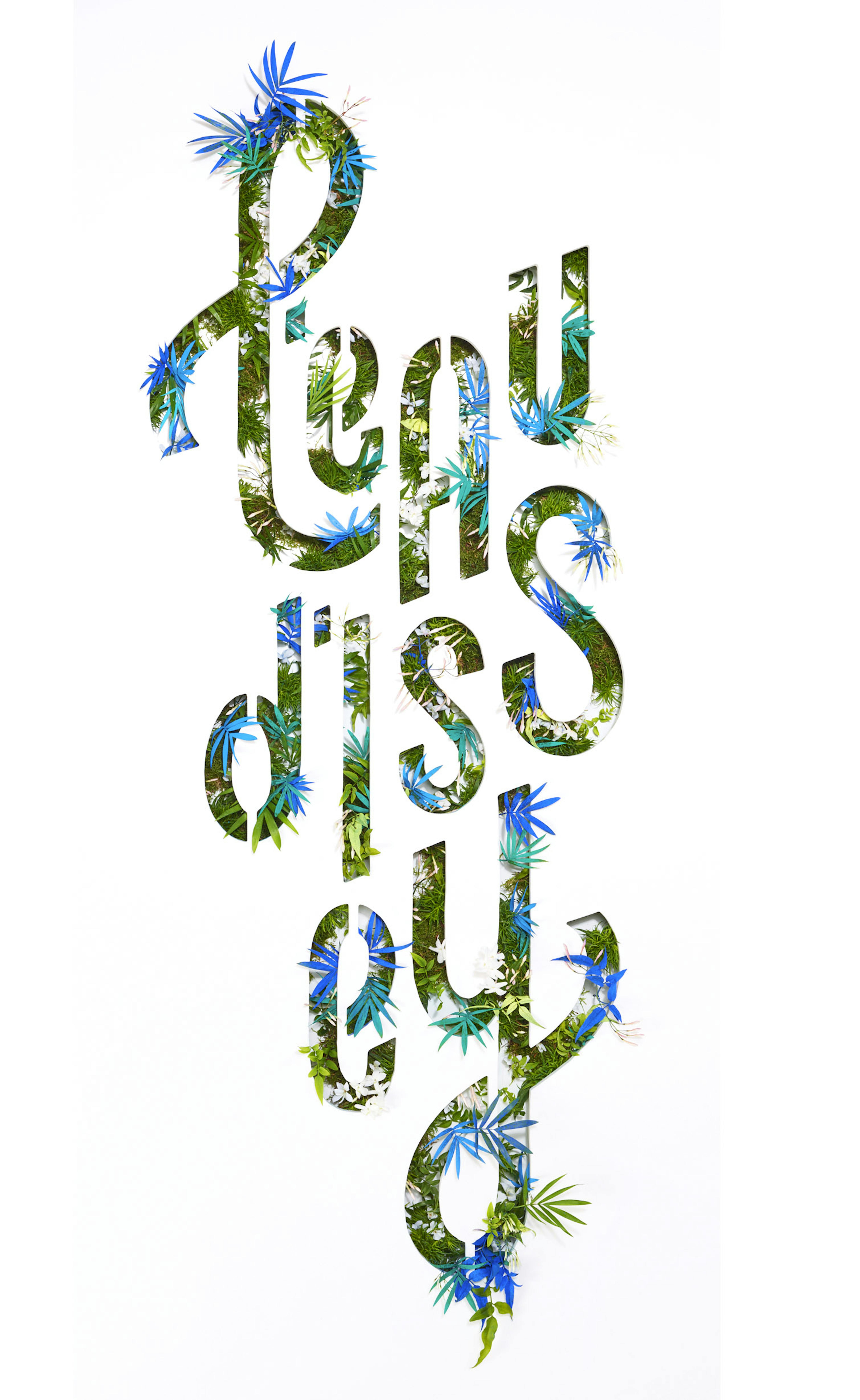 We’ve had the idea to create a window opening on a luxuriant vegetation, the typography being a metaphor for the sharp design of the bottle and the vegetation for the richness of the fragrance.