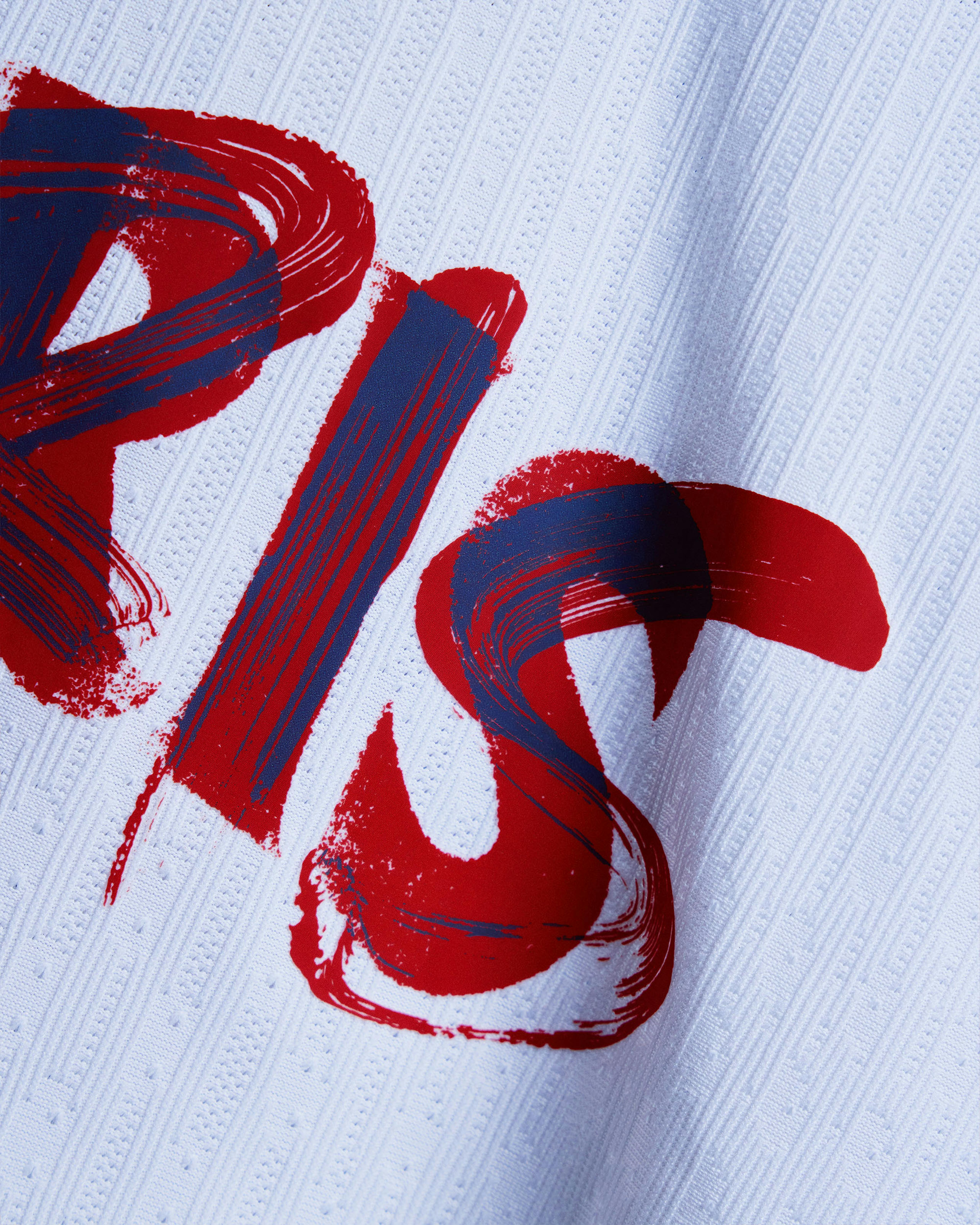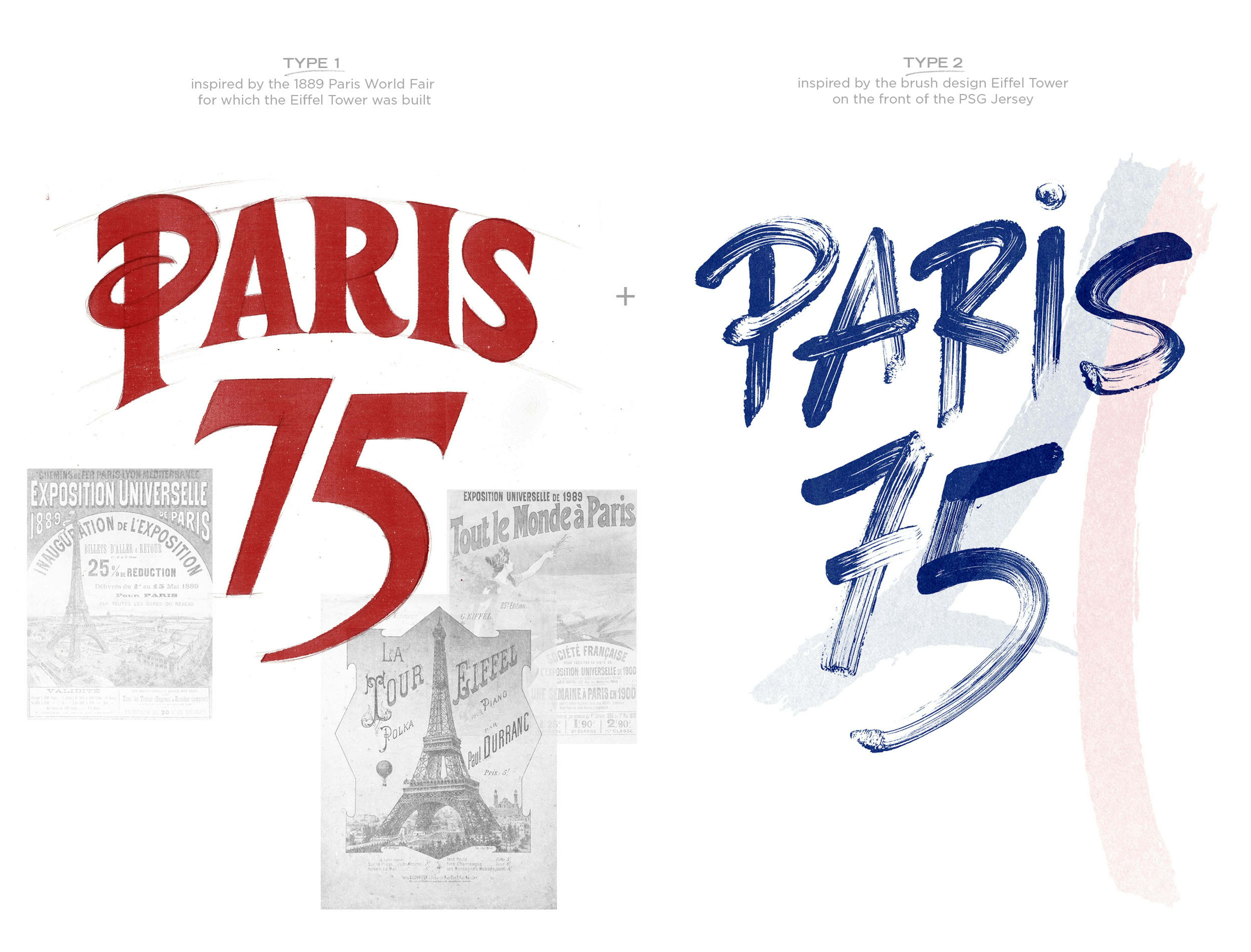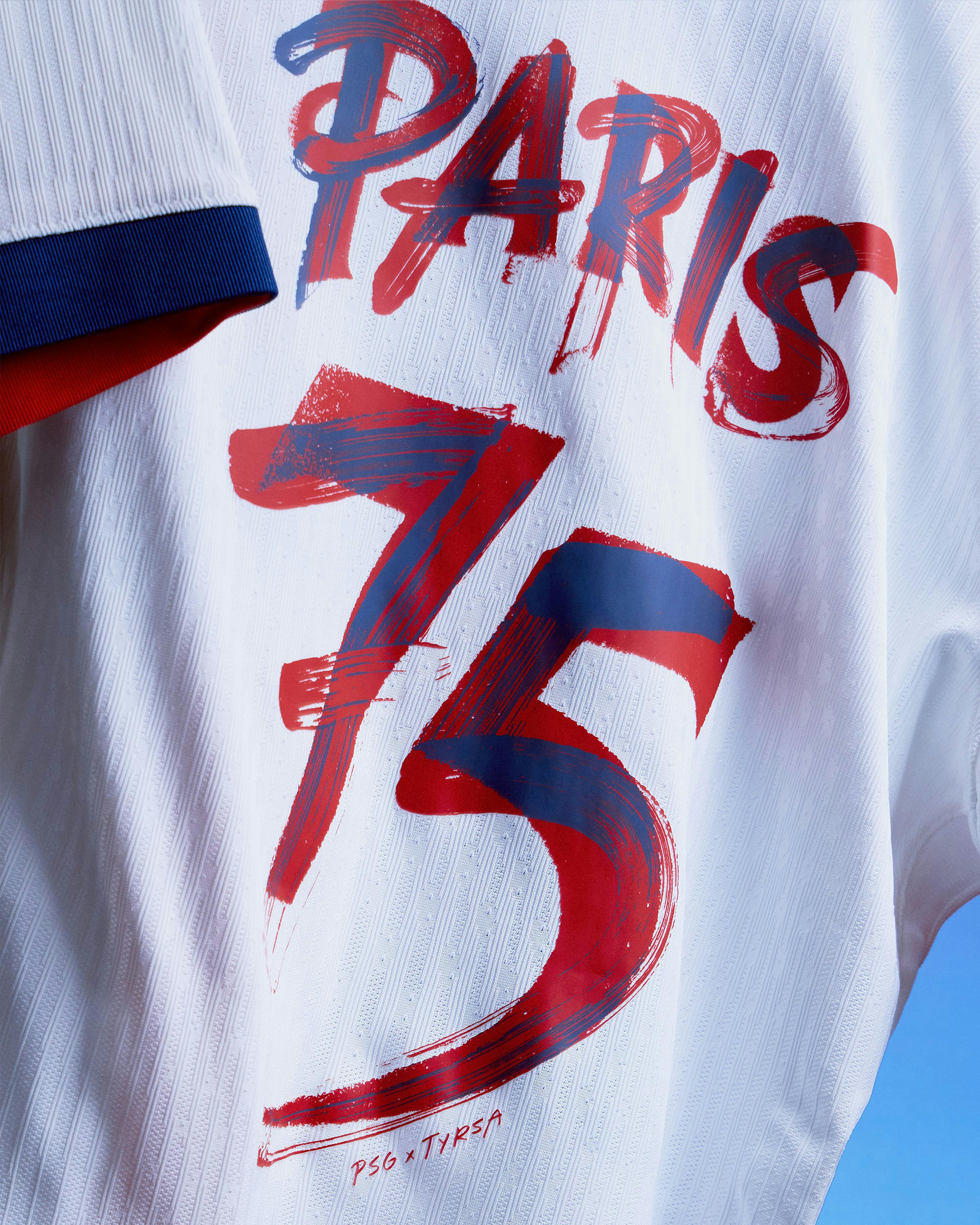The artwork pays tribute to the Eiffel Tower’s rich history by merging two distinct typographic styles: one inspired by the 1889 Paris World Fair—the year the monument was inaugurated—and the other by the brushstroke-style Eiffel Tower graphic featured on the front of the jersey.