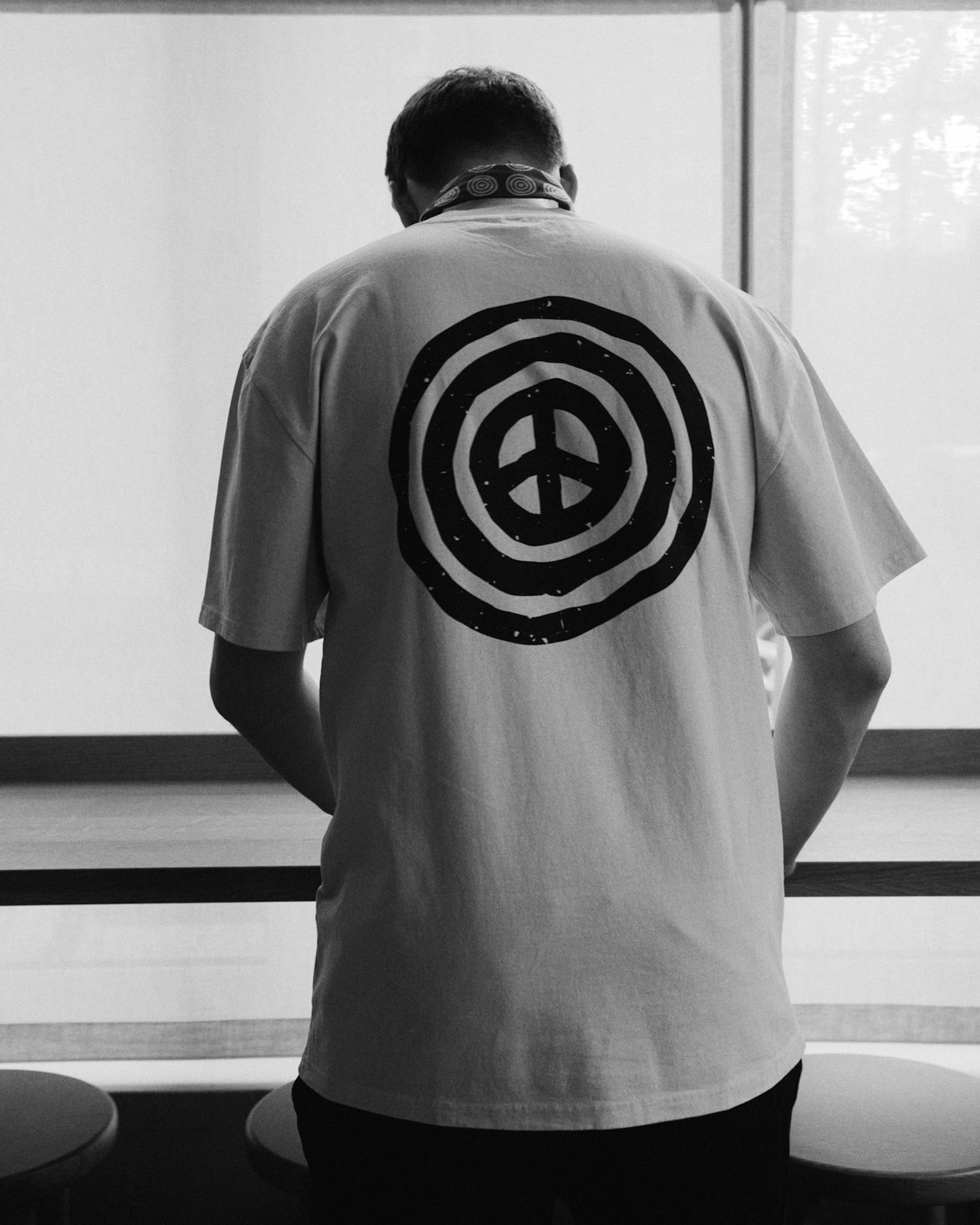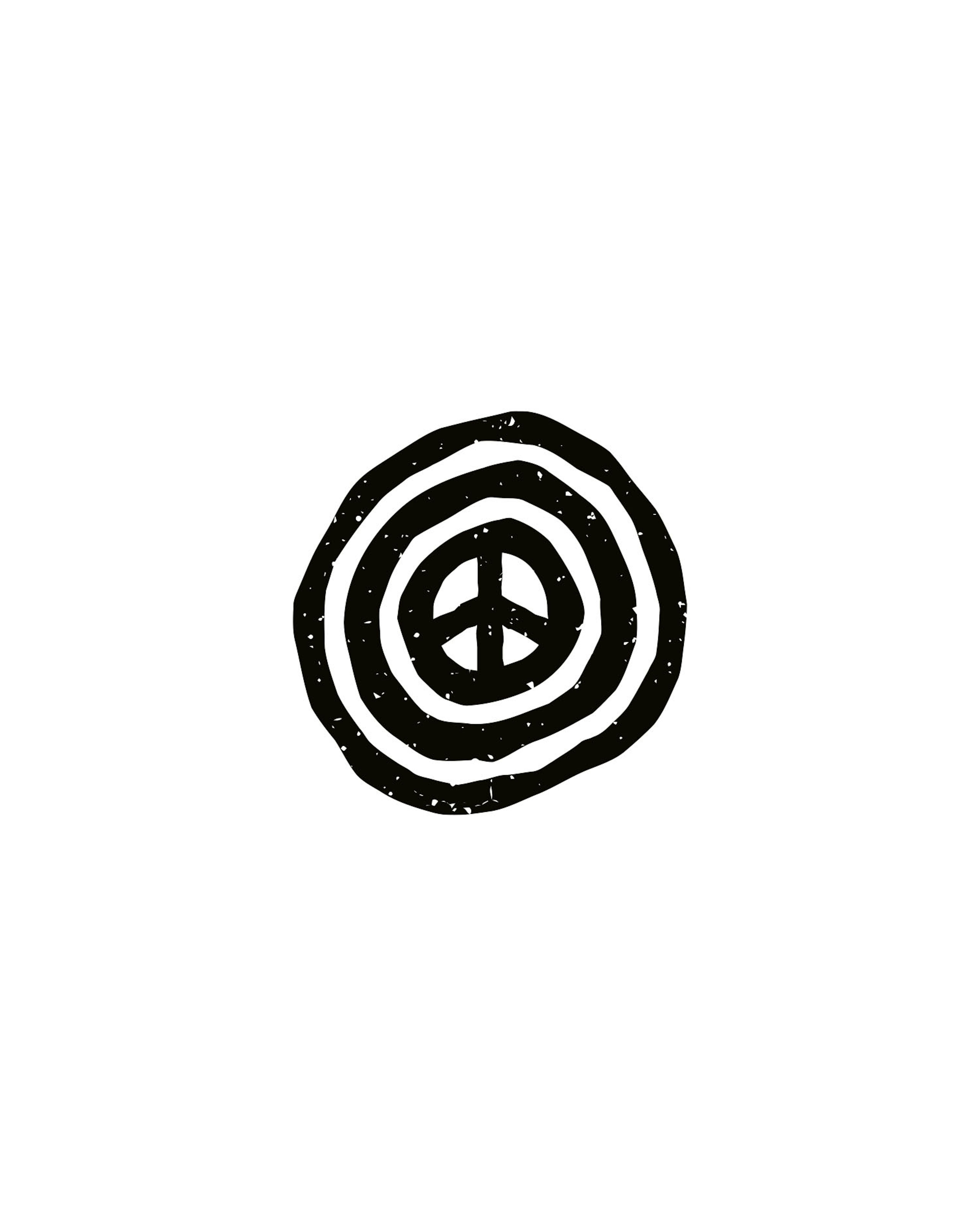 The peace sign surrounded by three circles is a key element of the identity, symbolizing the three founders and their shared values of community, creativity, and collaboration.