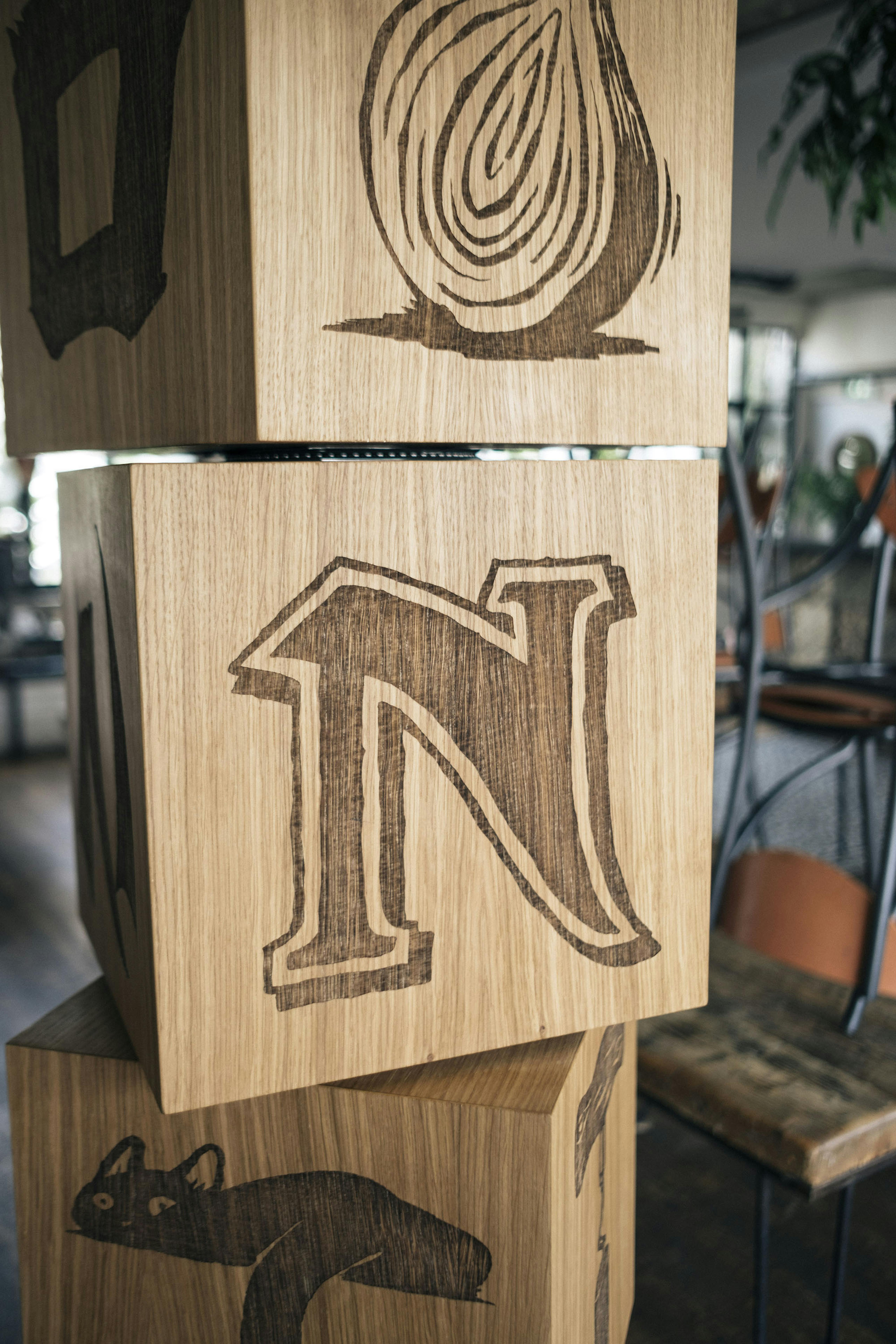 The totem was located in the center of the restaurant so people could have fun with and create their own logos by picking their favorite letters.