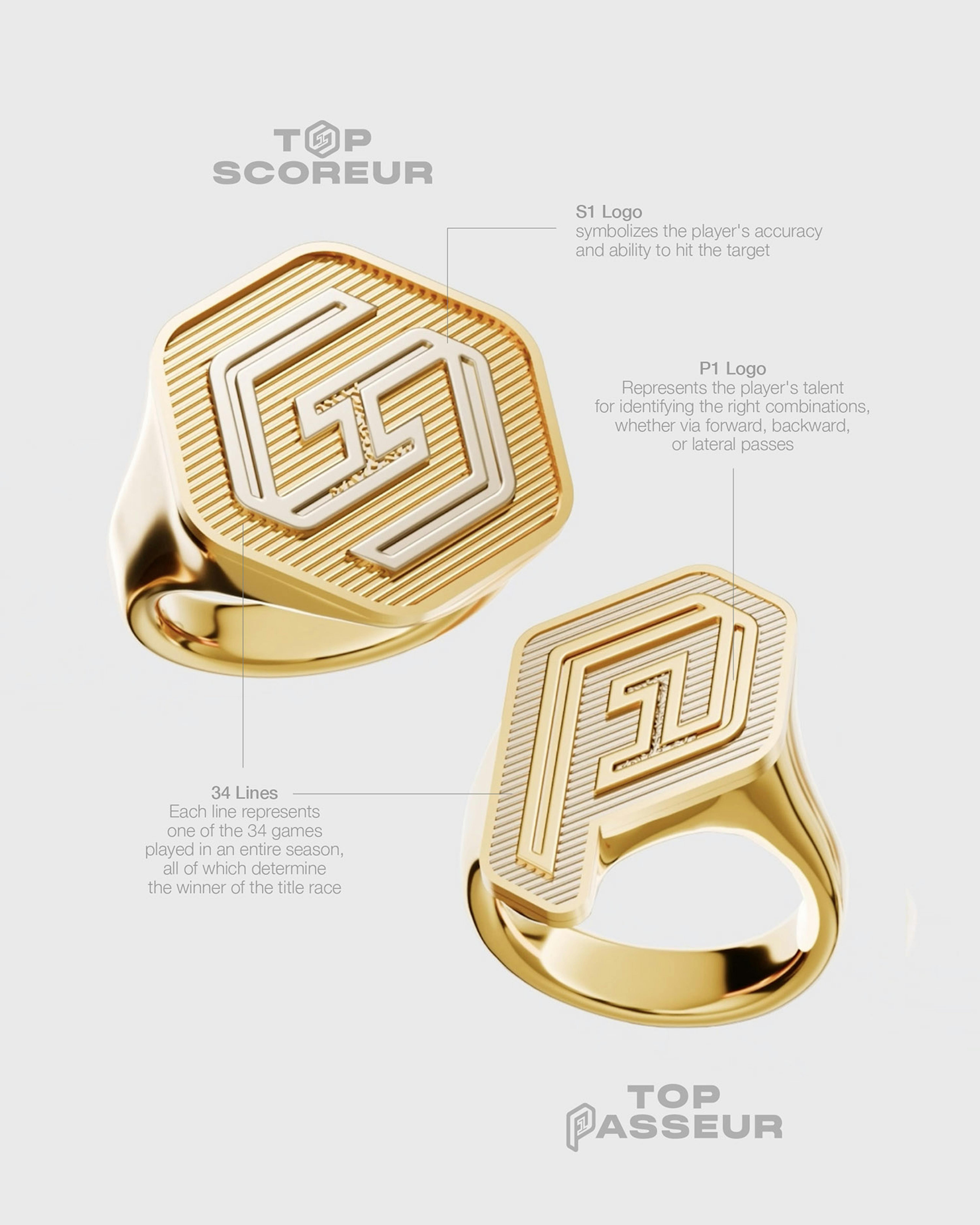 Two rewards, one creation, symbolizing the deep connection between the art of scoring and passing. As an additional reward for the player, each badge at the core of the trophy reveals a ring hidden inside.