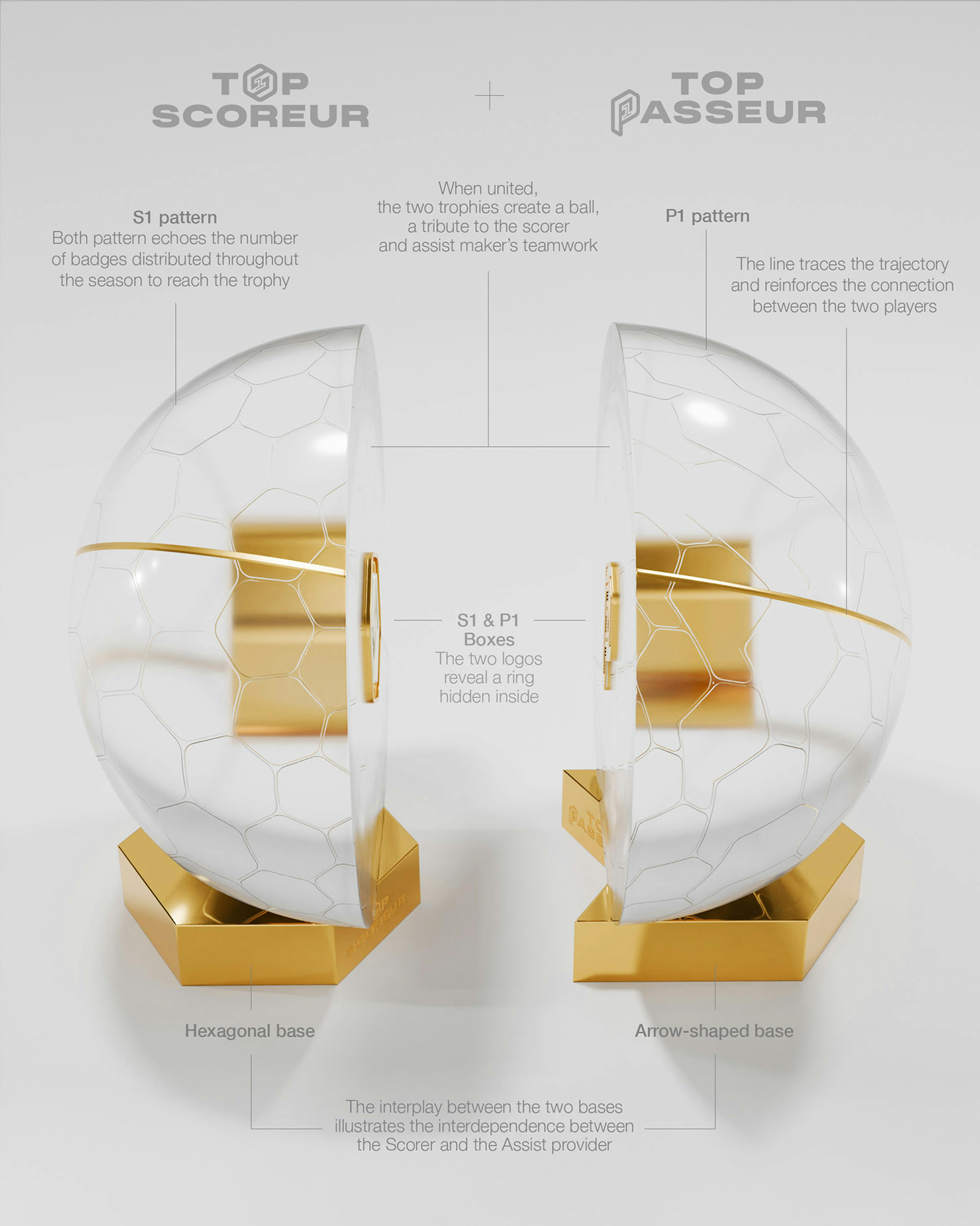 Design & Concept for The Ligue 1 Top Scoreur & Top Passeur badges and trophies.