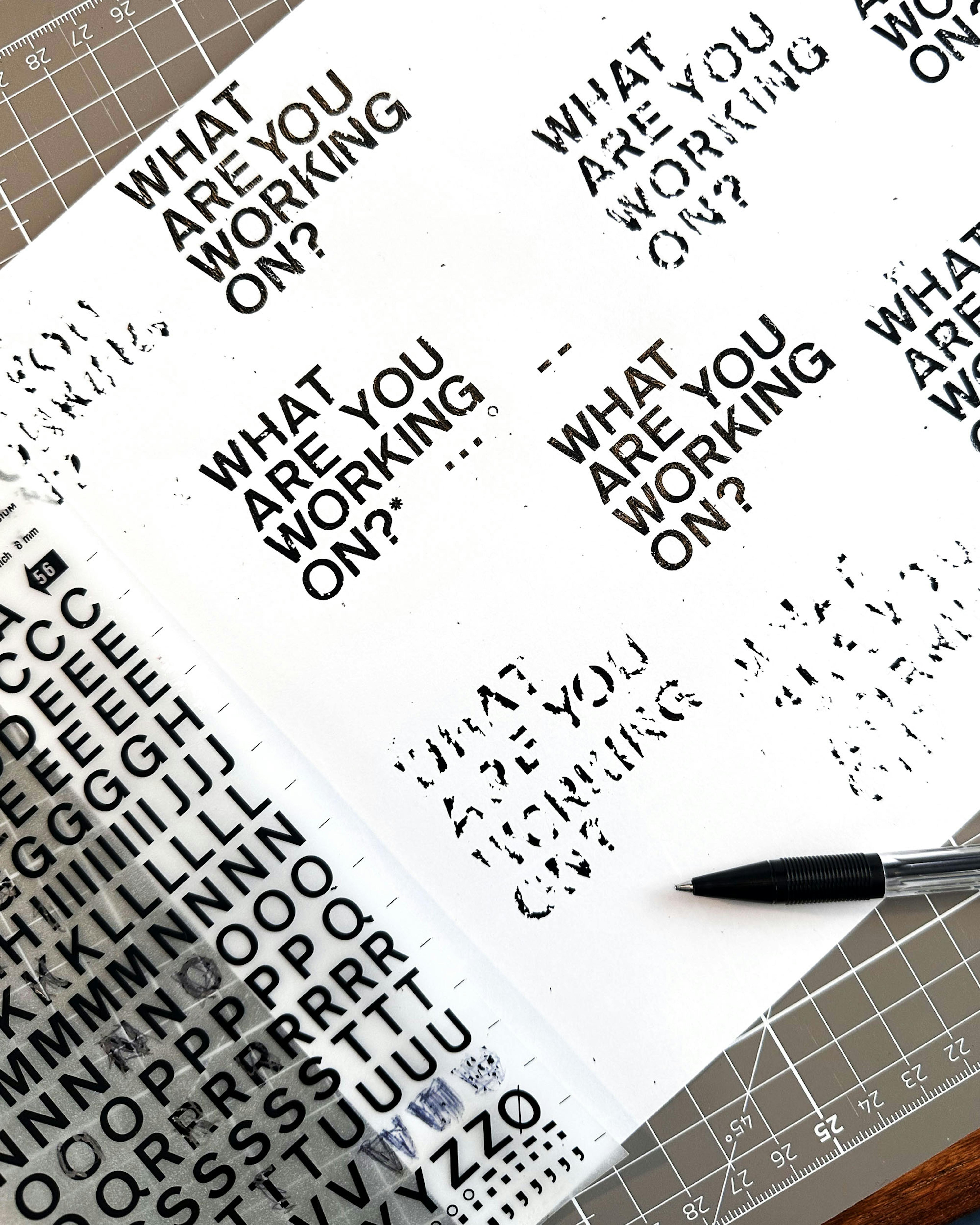 To illustrate the Work in Progress idea, we've created an entirely analog identity, using Akzidenz-Grotesk typeface on Letraset, hand lettering, and several hand drawn doodles.